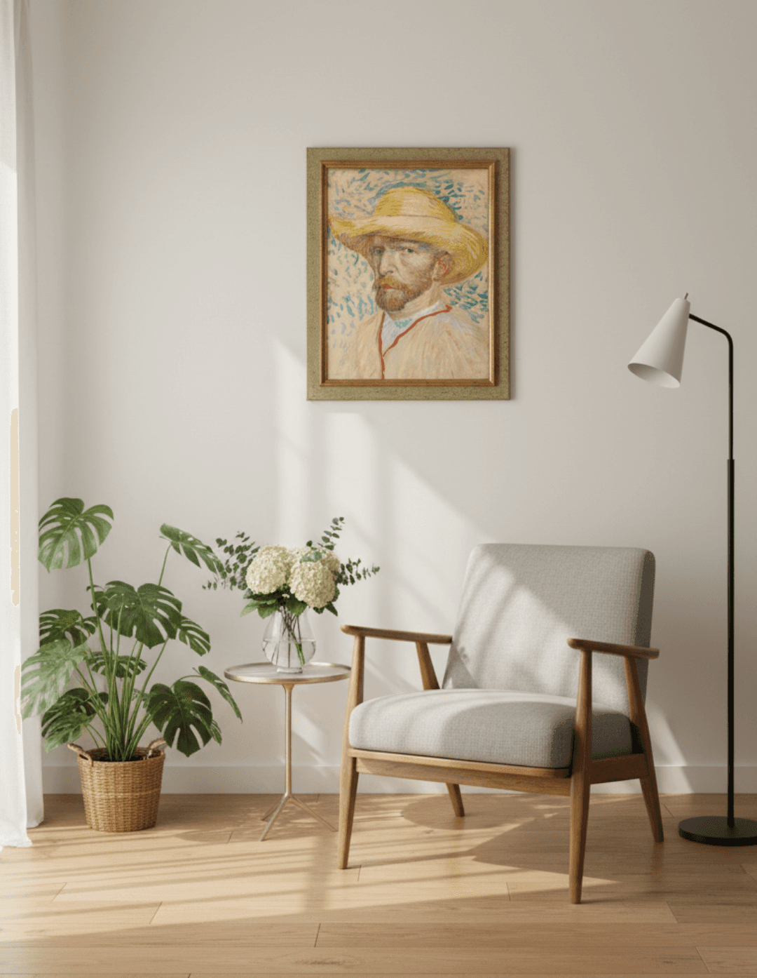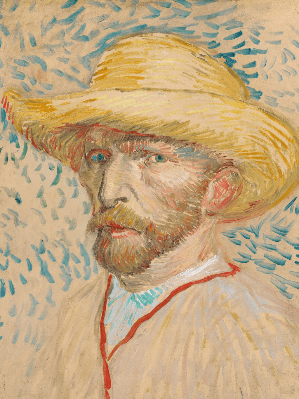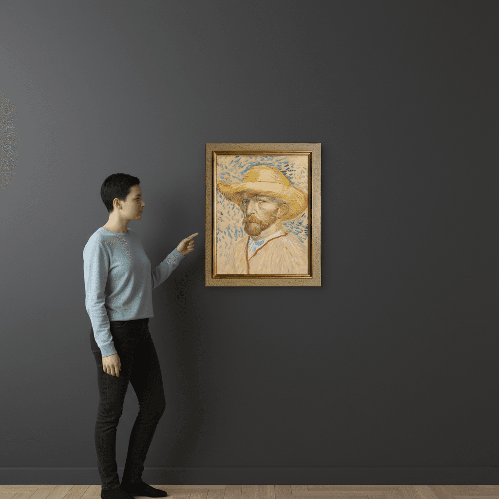 กรอบรูปไม้แท้ จาก ญี่ปุ่นสภาพใหม่ แนว Vintage ภาพพิมพ์ สไตล์สีน้ำมัน บนผ้าใบ Self-Portrait with Straw Hat Vincent van Gogh (1853 - 1890), Paris, August-September 1887