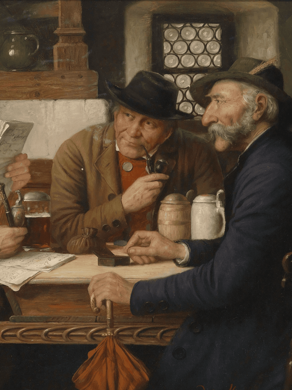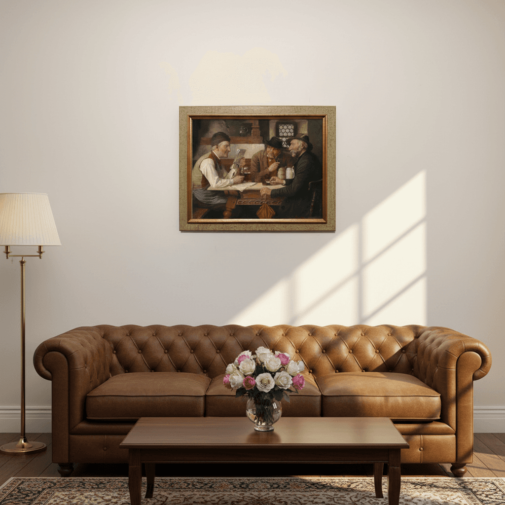 กรอบรูปไม้แท้ จาก ญี่ปุ่นสภาพใหม่ แนว Vintage ภาพพิมพ์ สไตล์สีน้ำมัน บนผ้าใบ Die Wirtshausrunde Josef Wagner-Höhenberg (German, 1870 -1939)