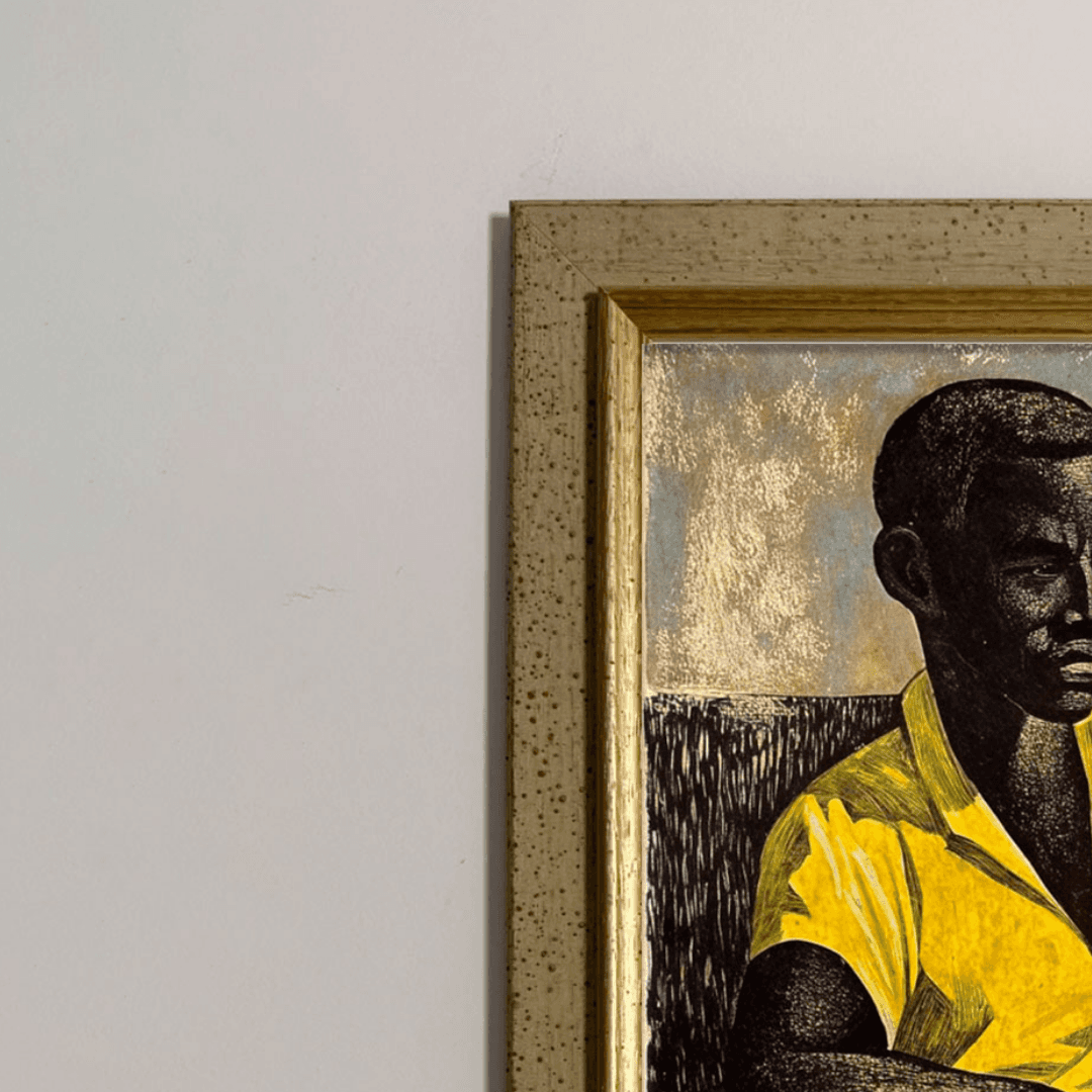 กรอบรูปจาก ญี่ปุ่นสภาพใหม่ แนว Vintage ภาพพิมพ์ ไสตล์ Woodcut บนผ้าใบ