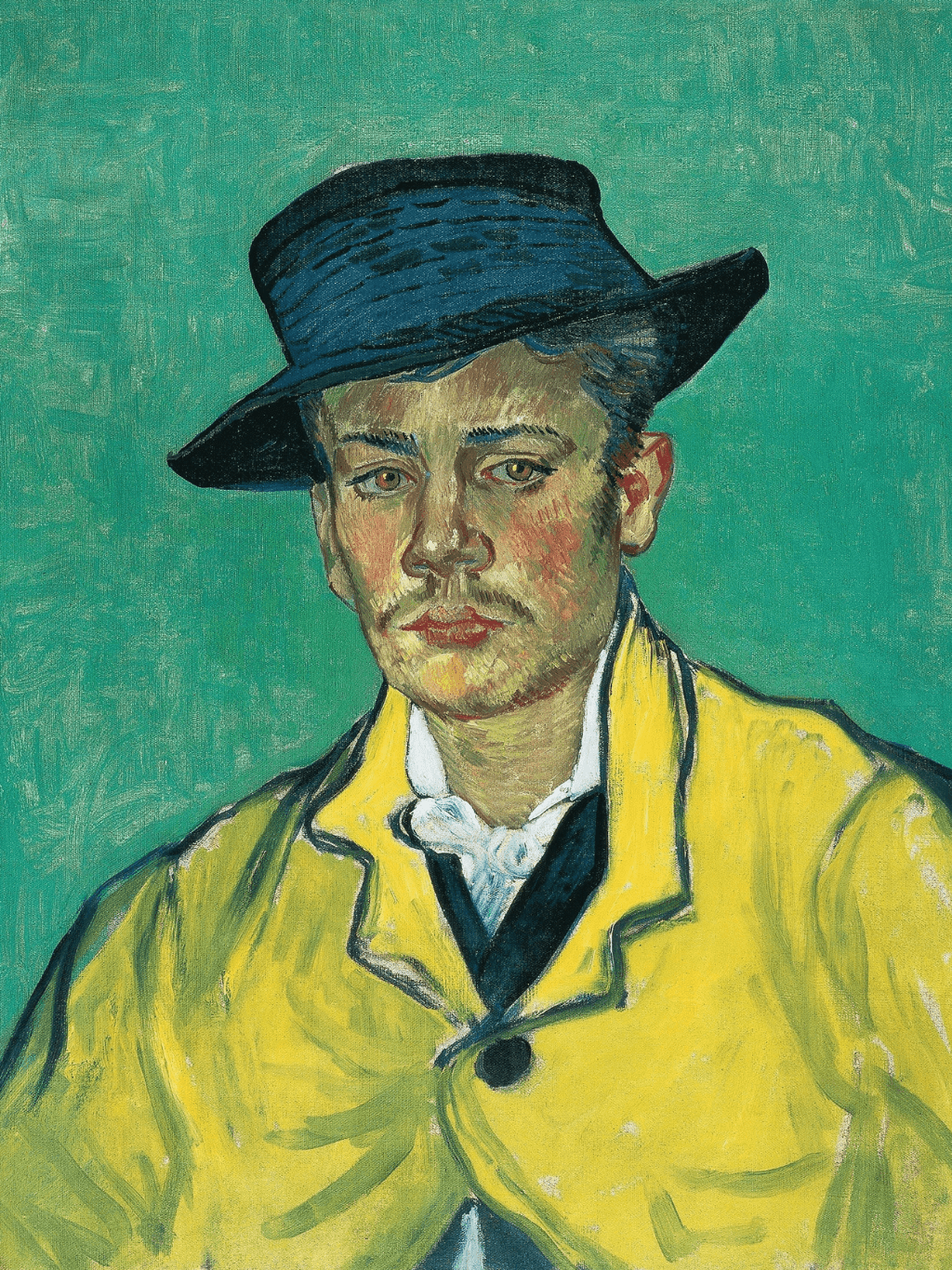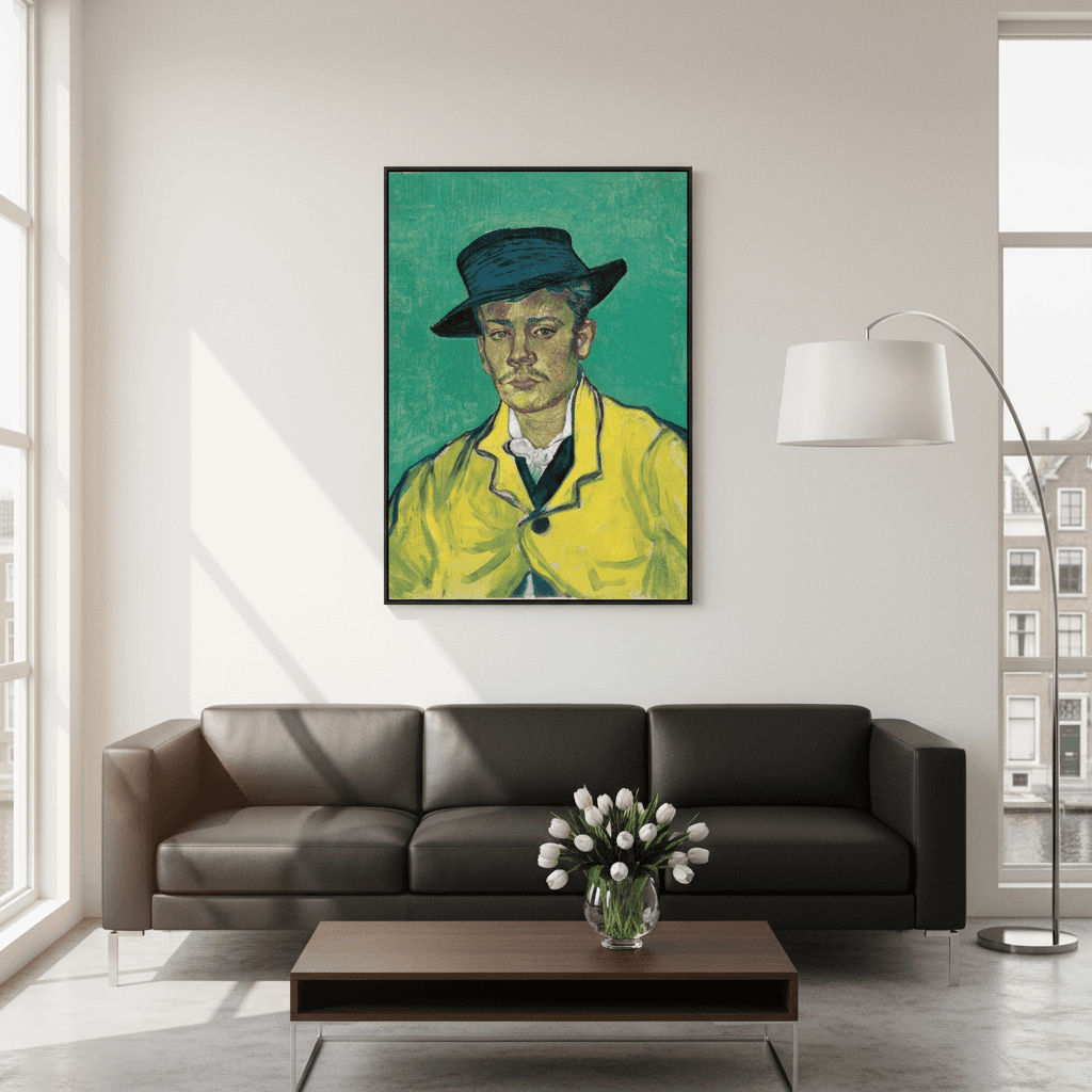 กรอบรูปอลูมิเนียมดำน้ำหนักเบาด้านหน้าติดฟิล์มใสของให่จากญี่ปุ่น ภาพพิมพ์สีน้ำมัน บนผ้าใบ Portrait of Armand Roulin (1888) Vincent van Gogh (Dutch, 1853-1890