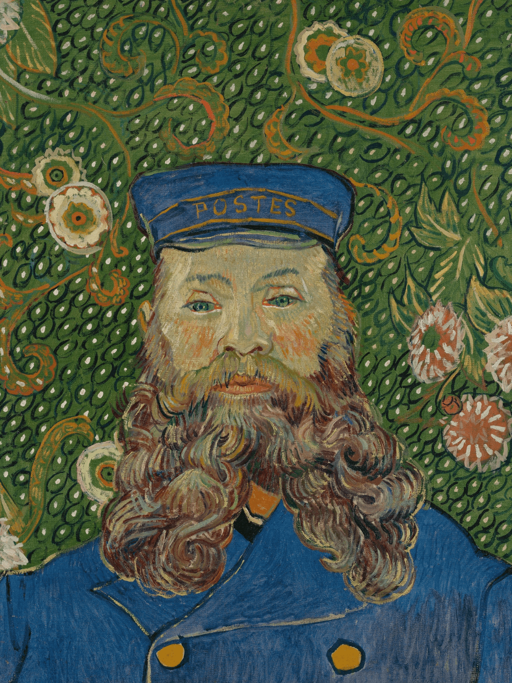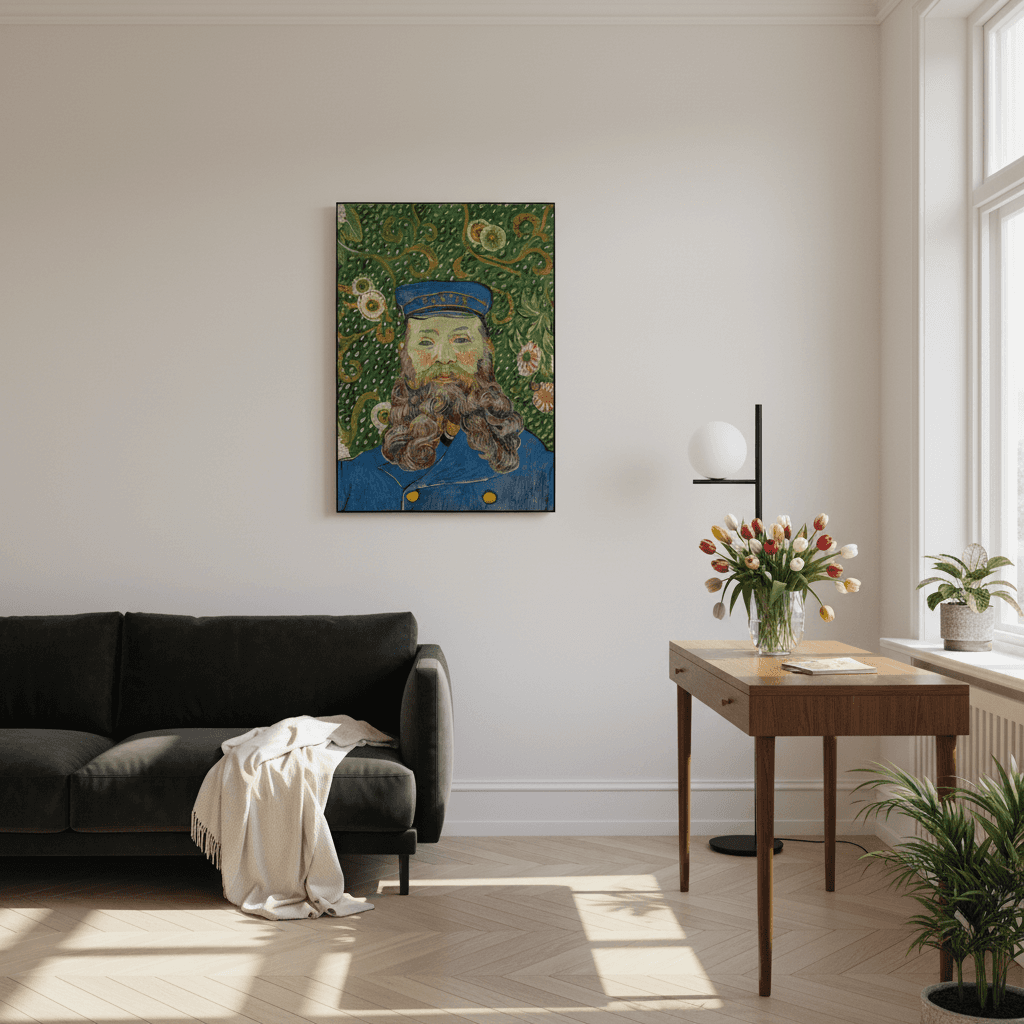 กรอบรูปอลูมิเนียมดำน้ำหนักเบาด้านหน้าติดฟิล์มใสของให่จากญี่ปุ่น ภาพพิมพ์สีน้ำมัน บนผ้าใบ Portrait of Joseph Roulin (1889) Vincent van Gogh (Dutch, 1853-1890)