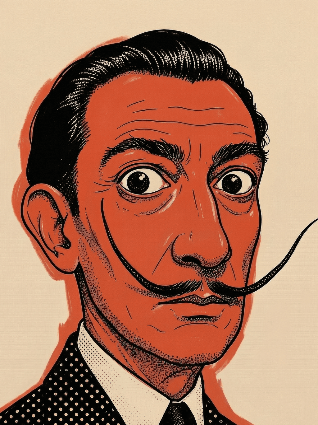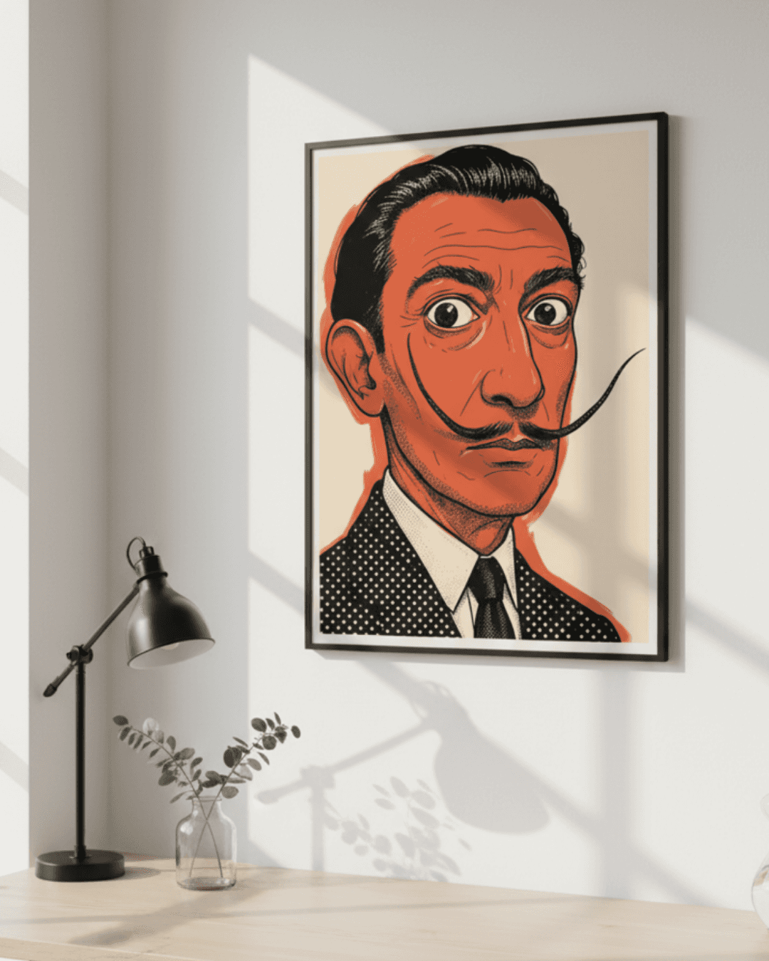 กรอบรูปอลูมิเนียมดำน้ำหนักเบาด้านหน้าติดฟิล์มใสของใหม่จากญี่ปุ่น ภาพพิมพ์ Illustrate Portrait Salvador Dali