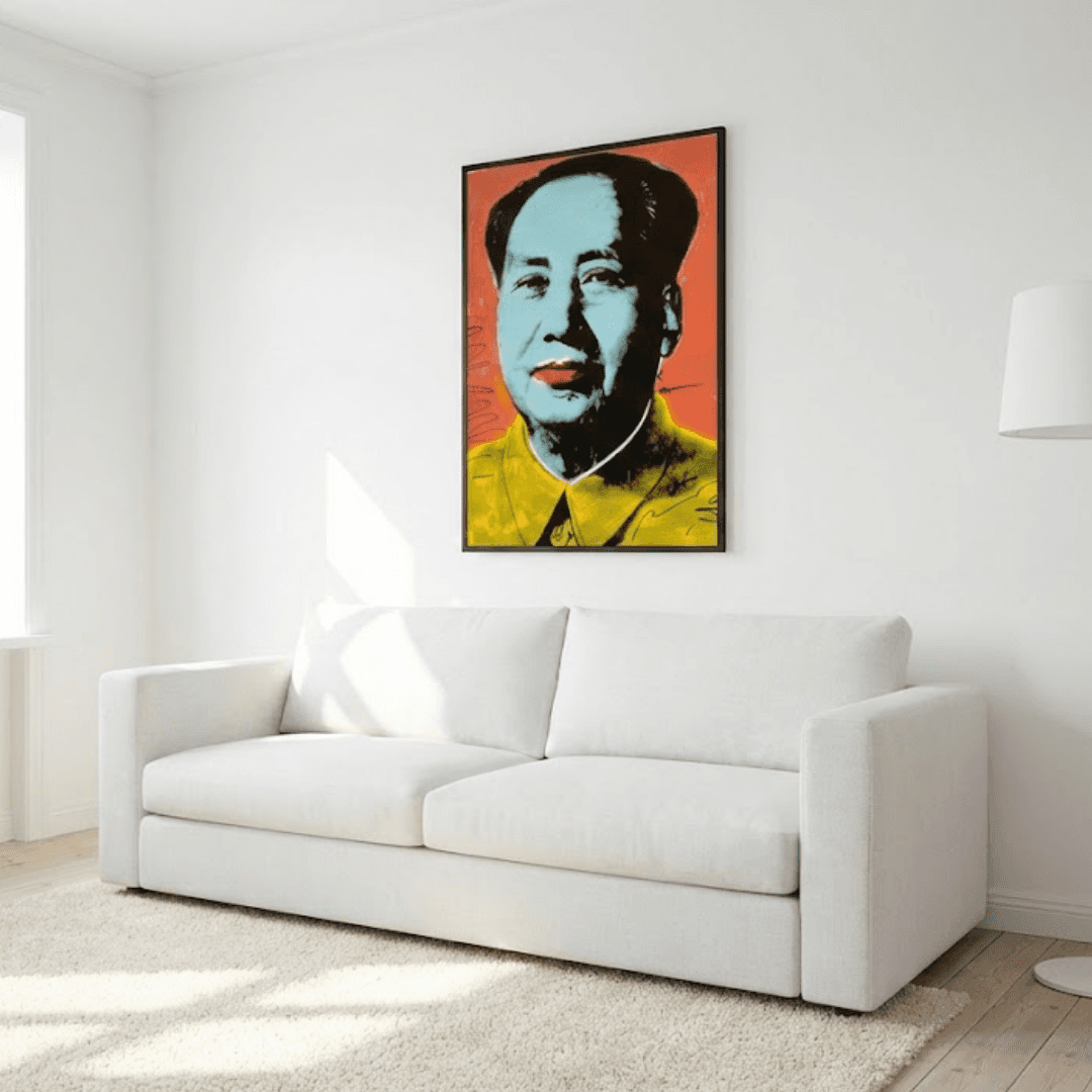 กรอบรูปอลูมิเนียมดำน้ำหนักเบาด้านหน้าติดฟิล์มใสของให่จากญี่ปุ่น ภาพพิมพ์สีงาน Pop Art Moa ของ Andy Warhol ปี 1984