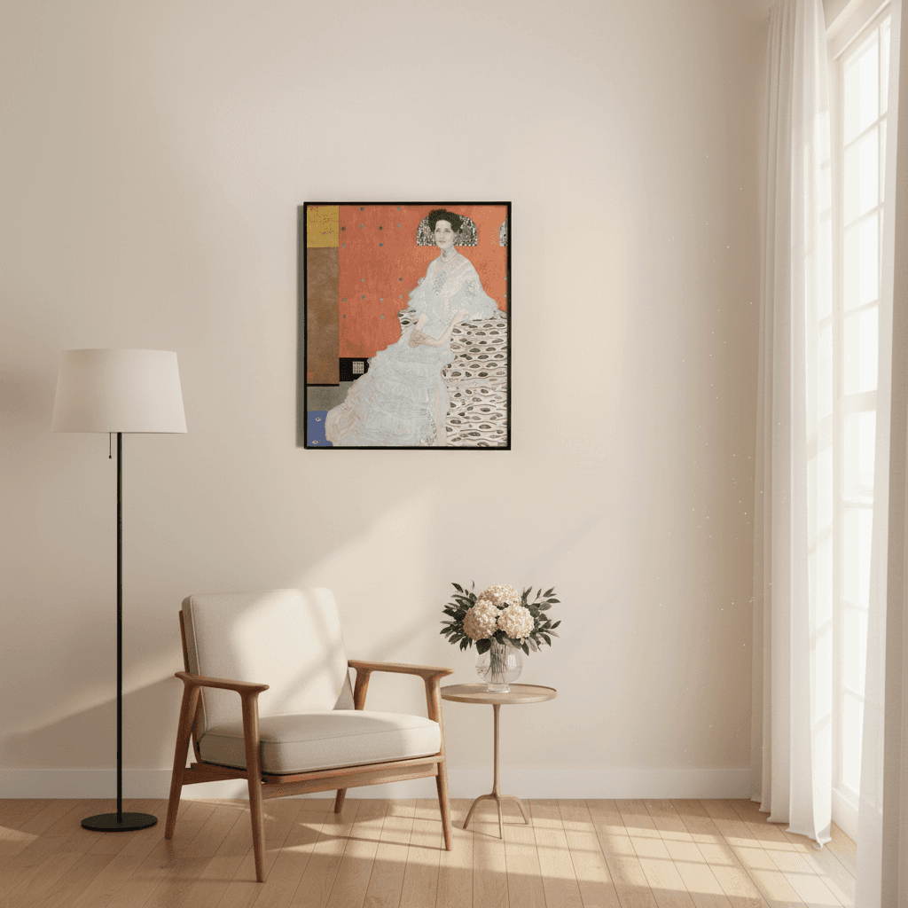 กรอบรูปโลหะสีดำด้าน ภาพพิมพ์ สไตล์สีน้ำมัน บนผ้าใบ ภาพ Fritza Riedler (1906) Gustav Klimt (Austrian, 1862-1918)