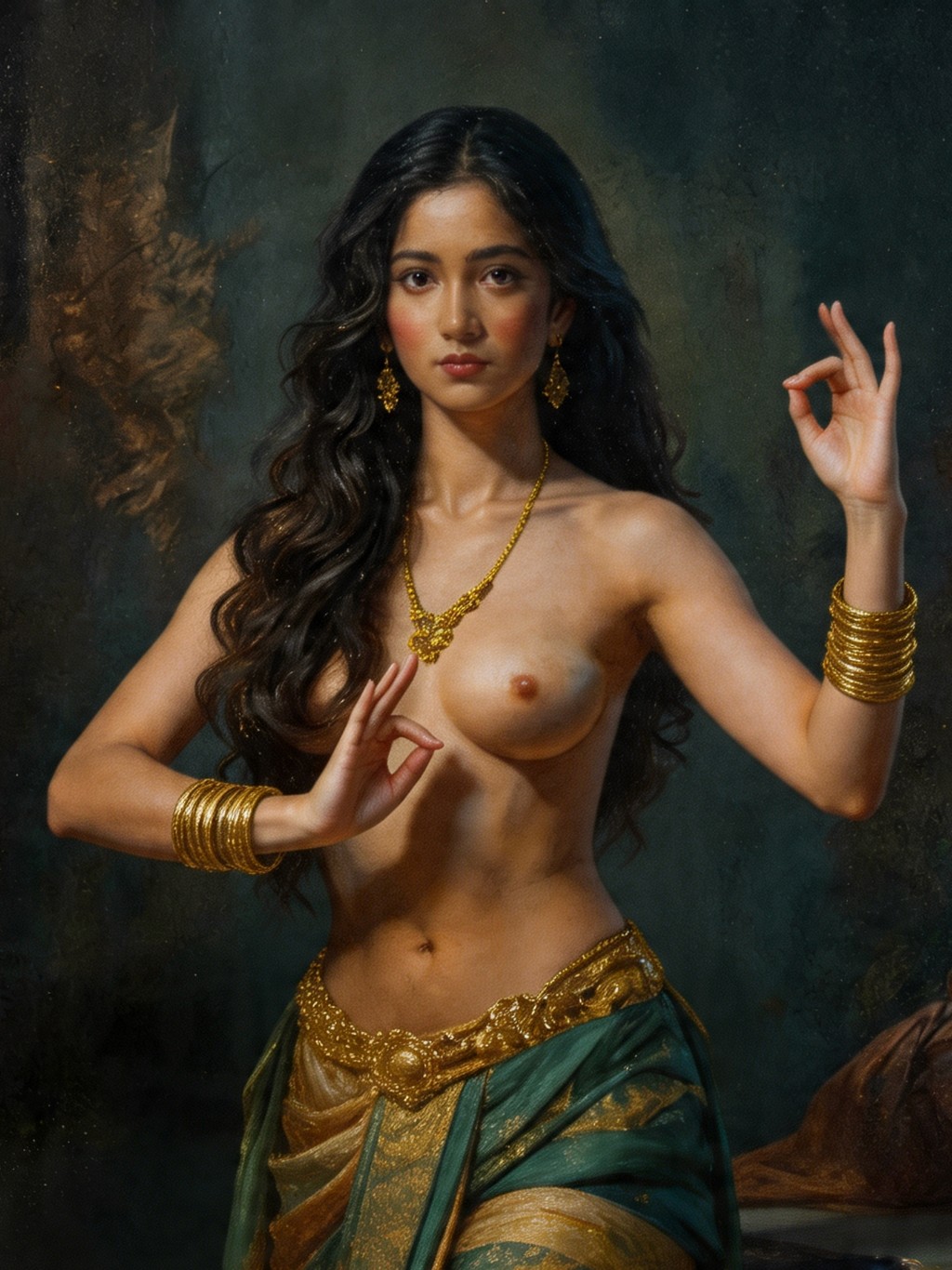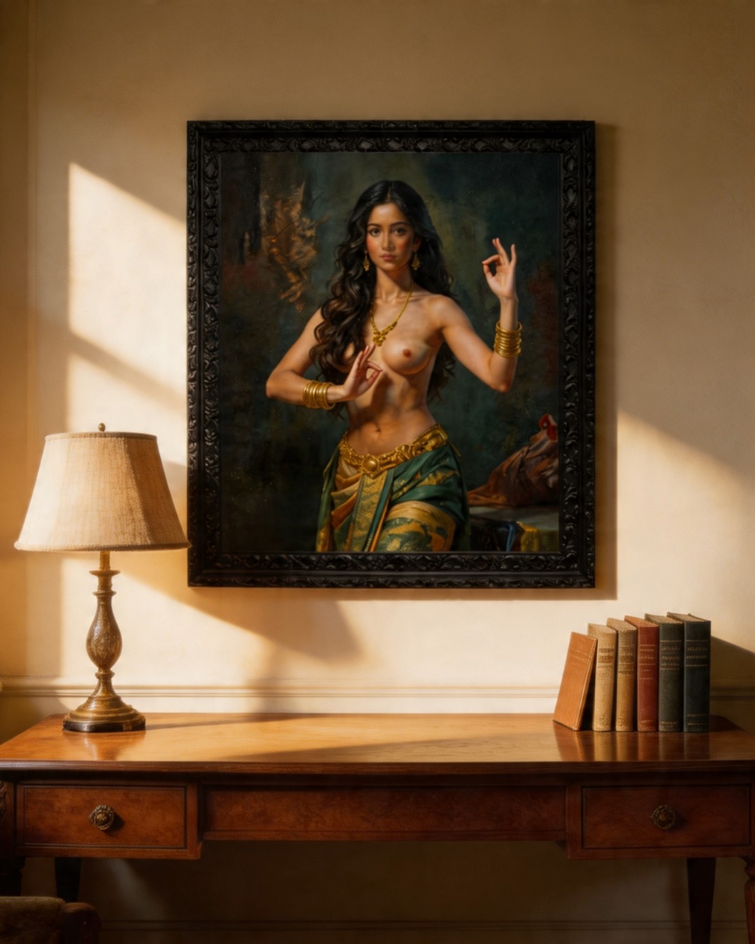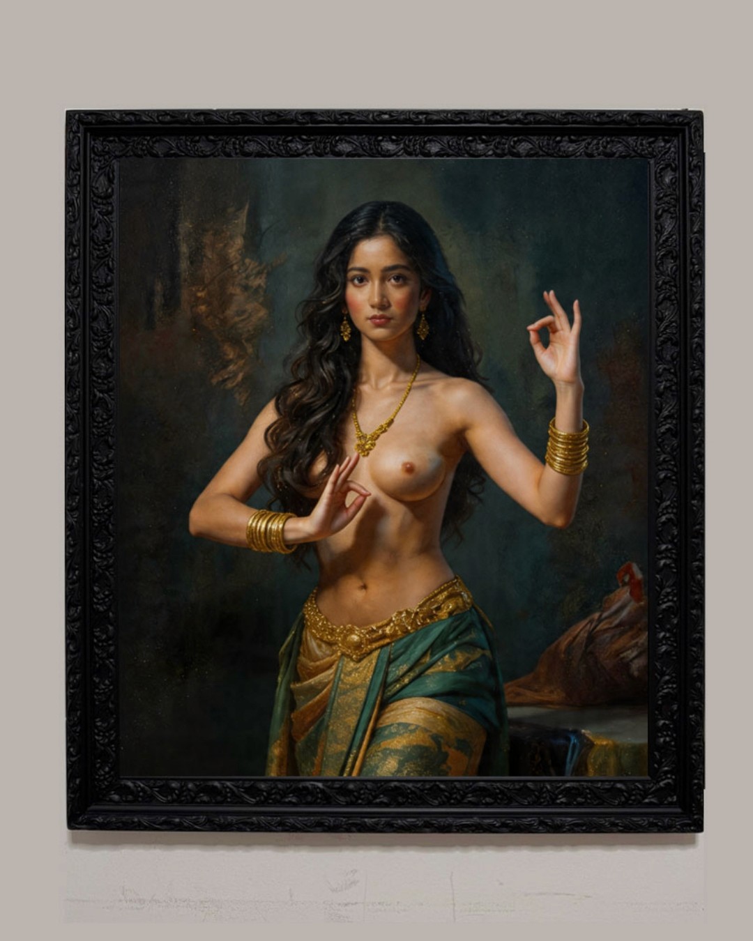 กรอบรูปลายหลุยส์ สีดำด้าน งานภาพพิมพ์ สไตล์ สีน้ำมันบนผ้าใบ ภาพ Thai Portrait