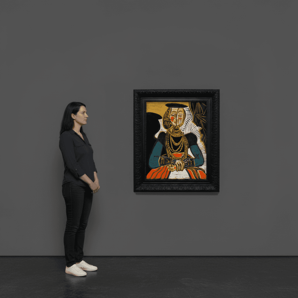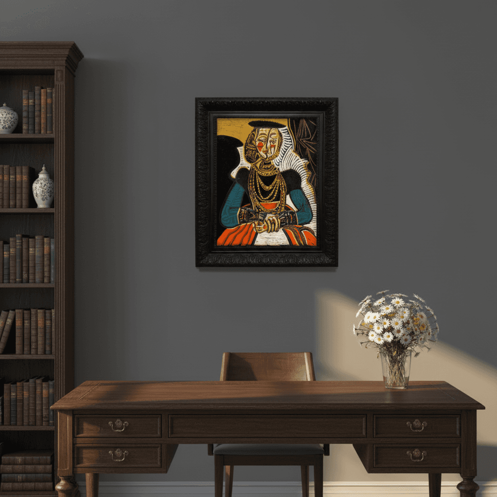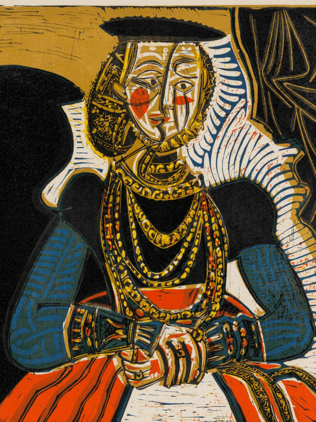 กรอบรูปลายหลุยส์ งานภาพพิมพ์ สไตล์ สีน้ำมันบนผ้าใบ ภาพ PABLO PICASSO PORTRAIT OF A YOUNG WOMAN, AFTER CRANACH THE YOUNGER, II 1958