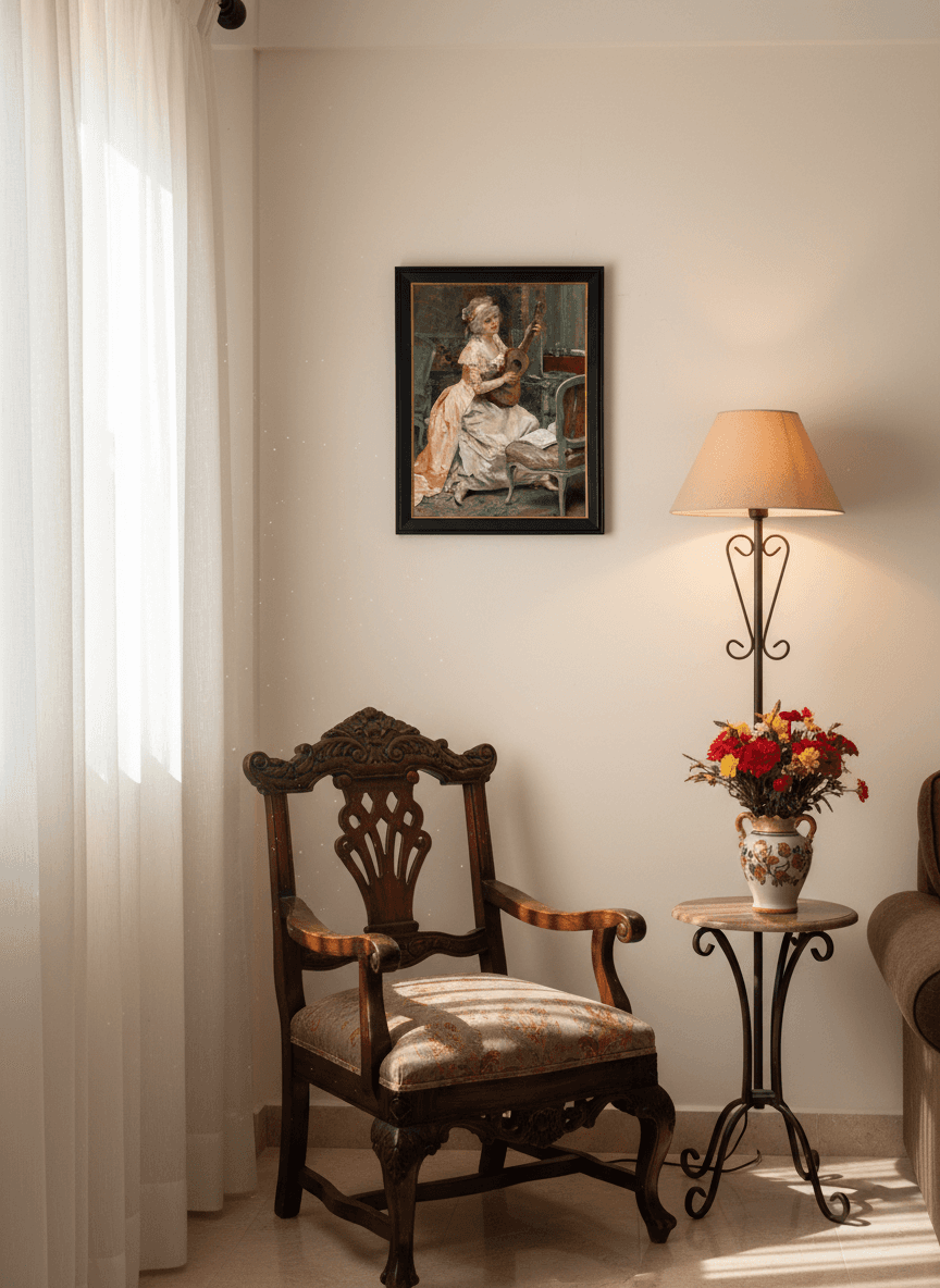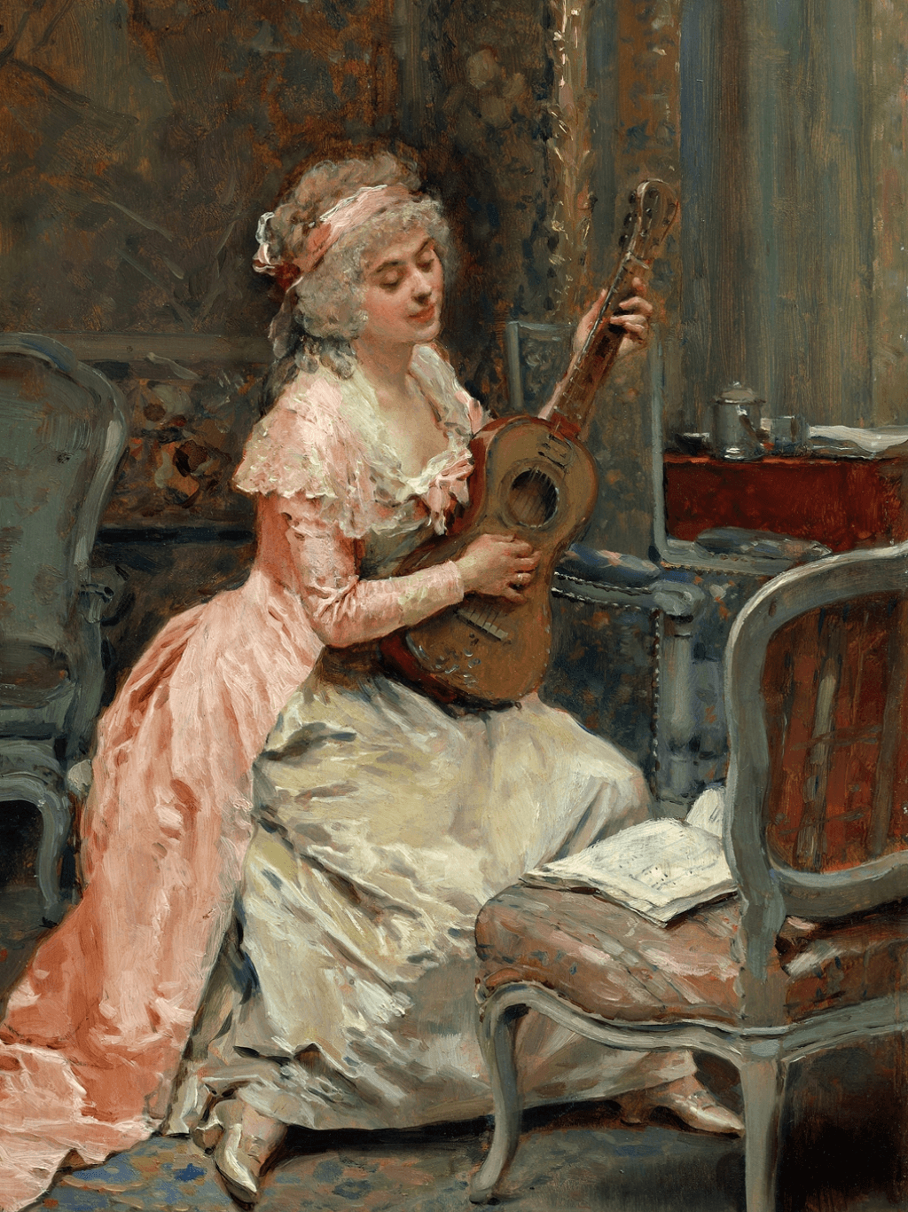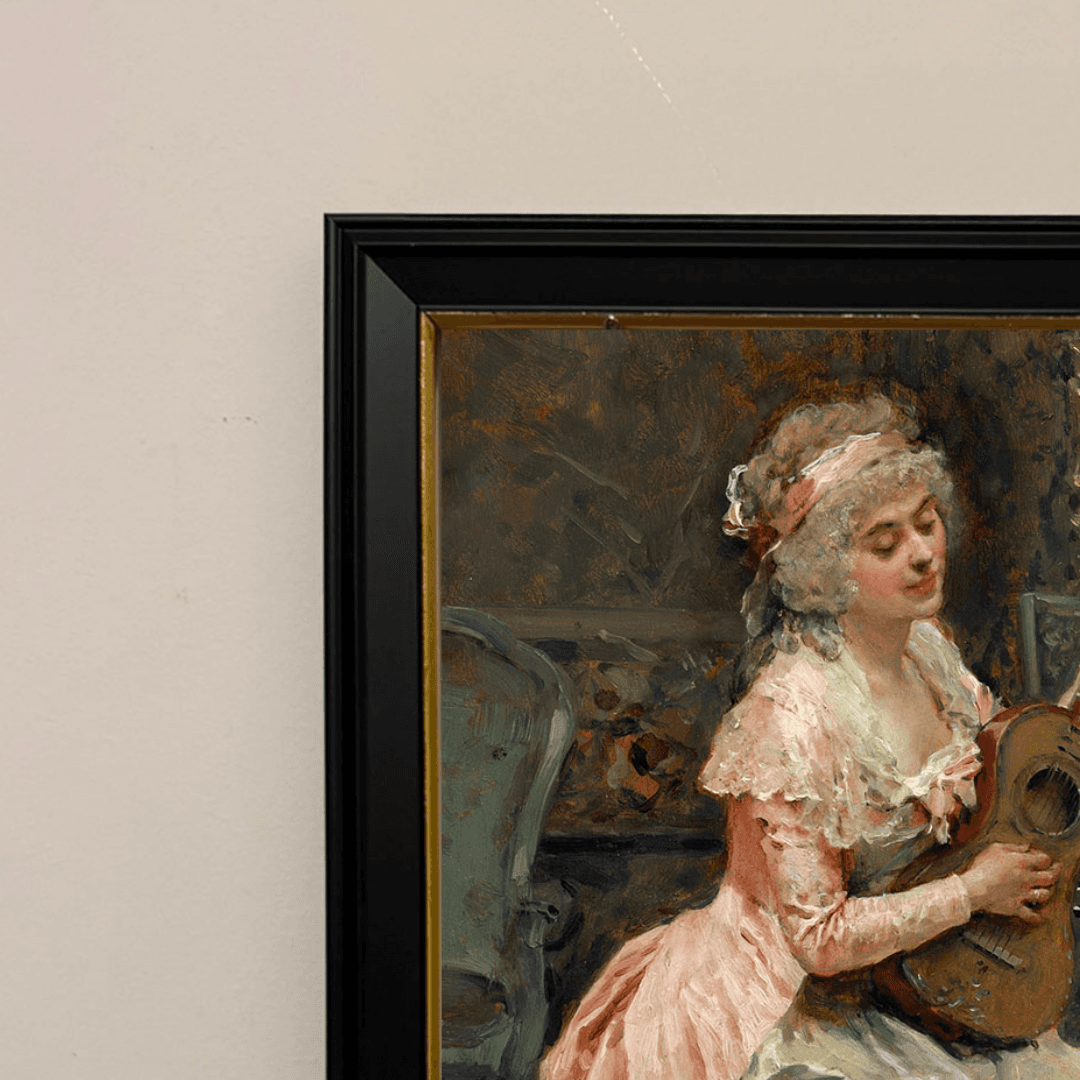 กรอบรูปสีดำด้านขอบทอง ภาพพิมพ์ บนผ้าใบ ภาพ Woman With A Guitar (c. 1870) Raimundo de Madrazo y Garreta (Spanish, 1841 - 1920)