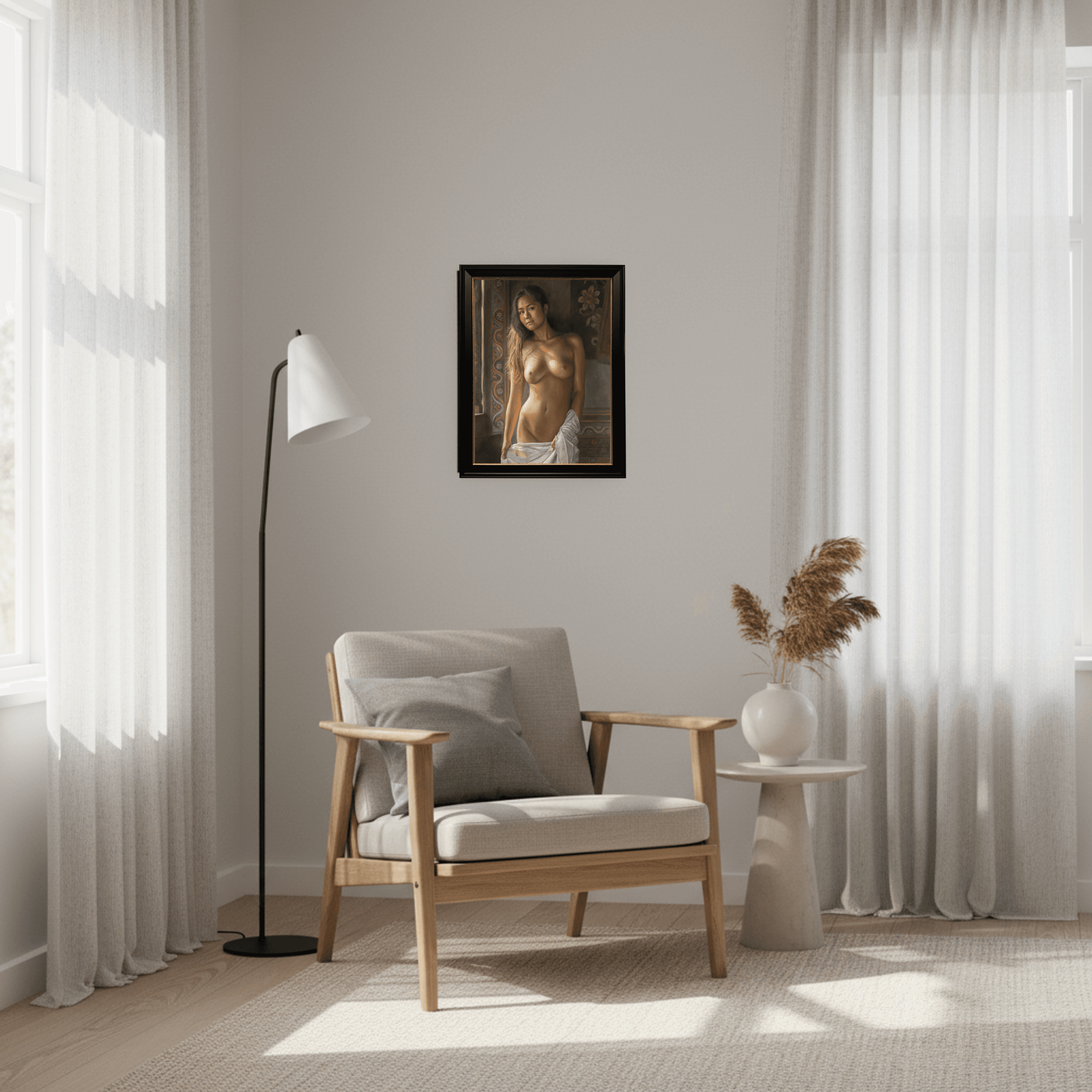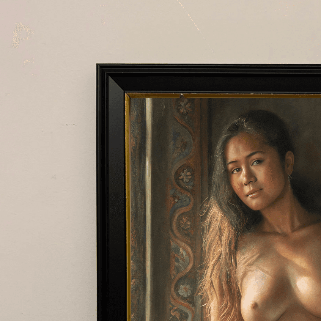 กรอบรูปสีดำด้านขอบทอง ภาพพิมพ์ บนผ้าใบ Erotic Portrait