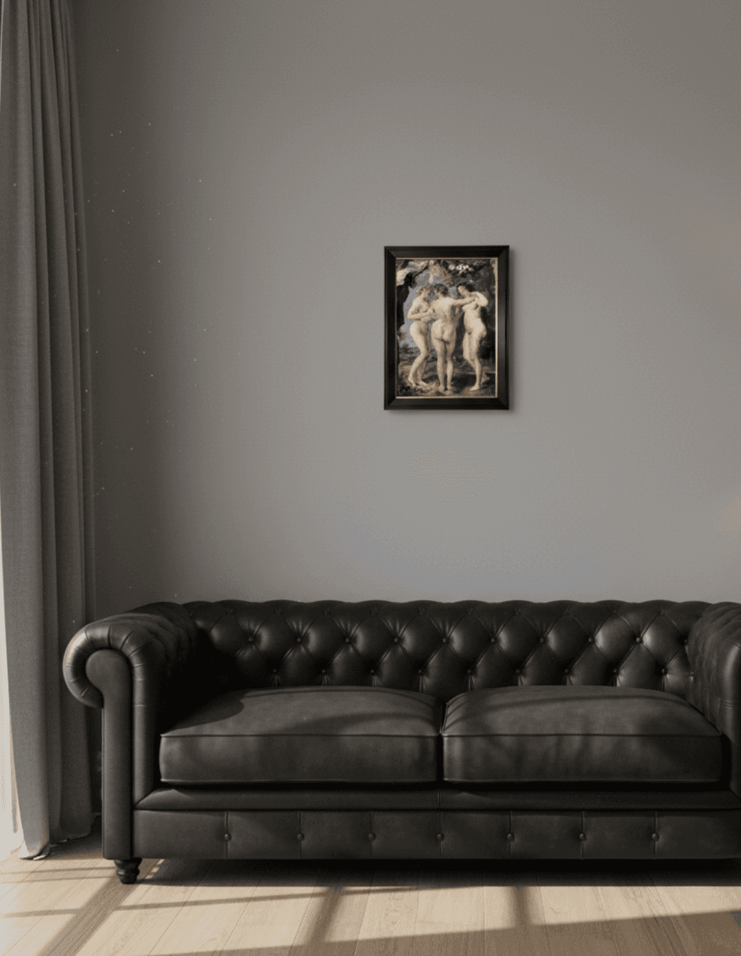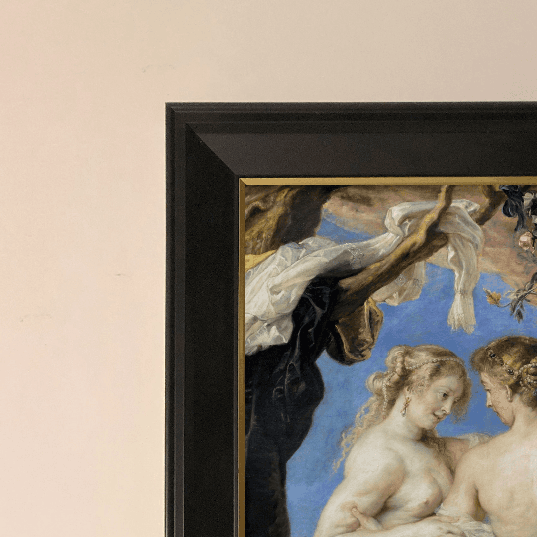 กรอบรูปสีดำด้านขอบทอง ภาพพิมพ์ สไตล์สีน้ำมัน บนผ้าใบ ภาพ The Three Graces