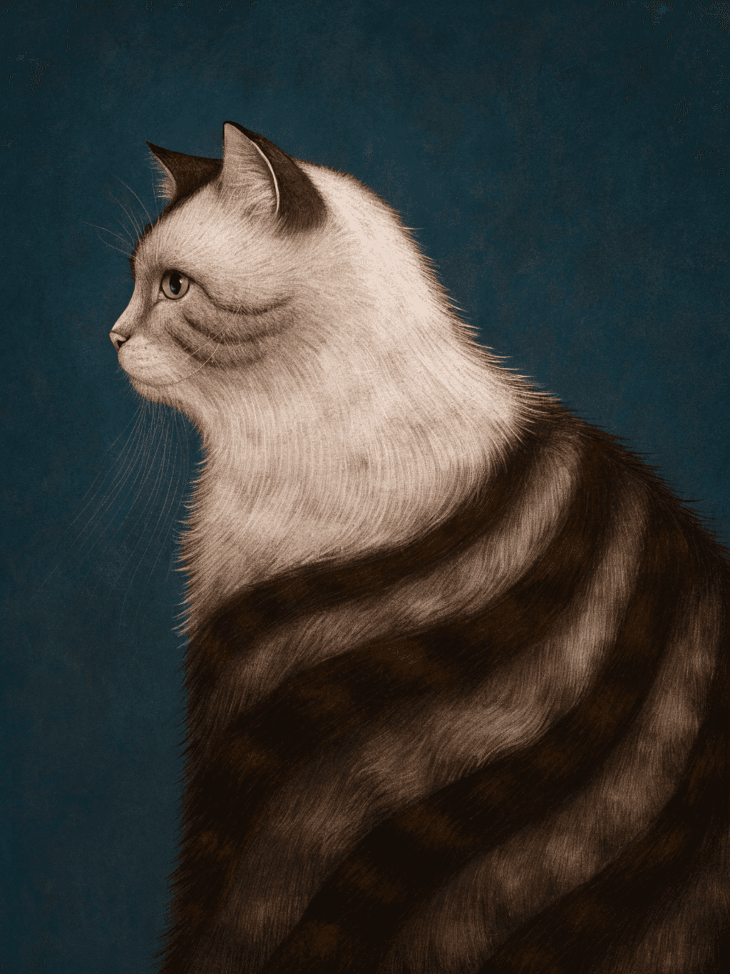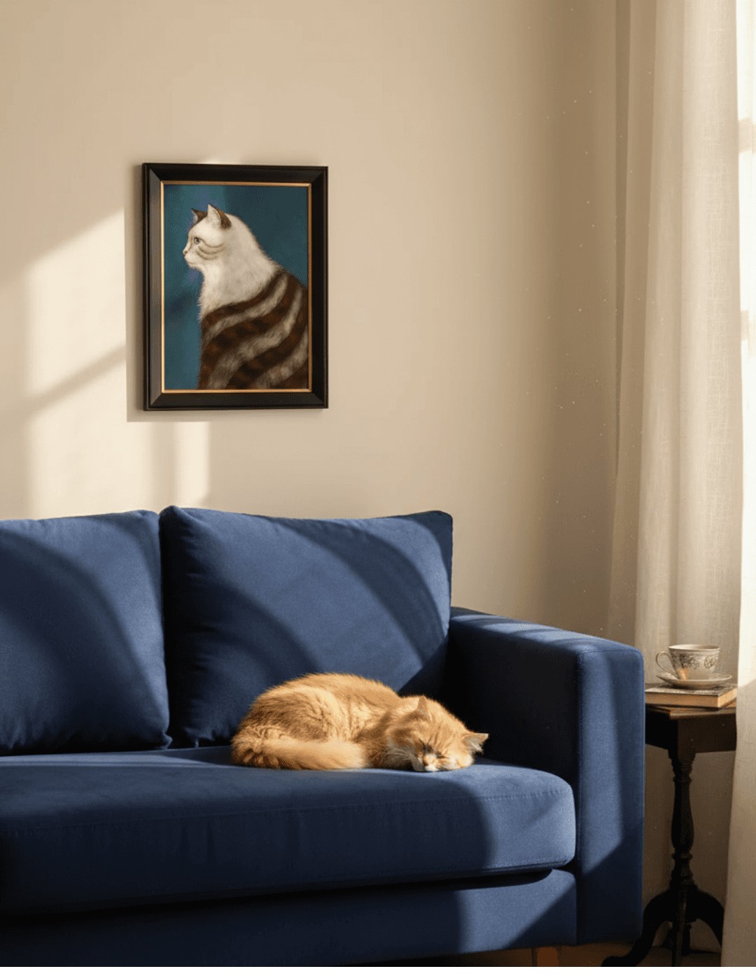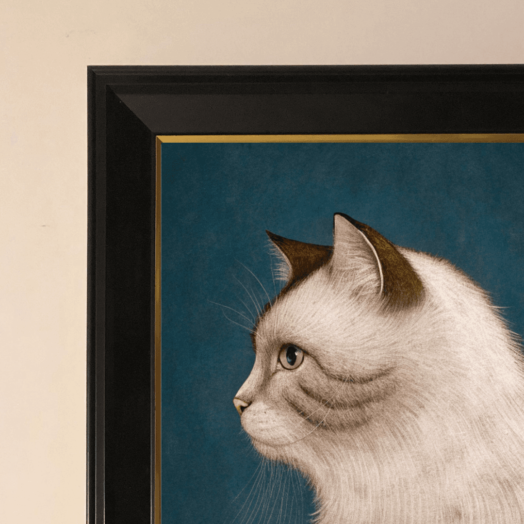 กรอบรูปสีดำด้านขอบทอง ภาพพิมพ์ สไตล์สีฝุ่น บนผ้าใบ ภาพ The Cat