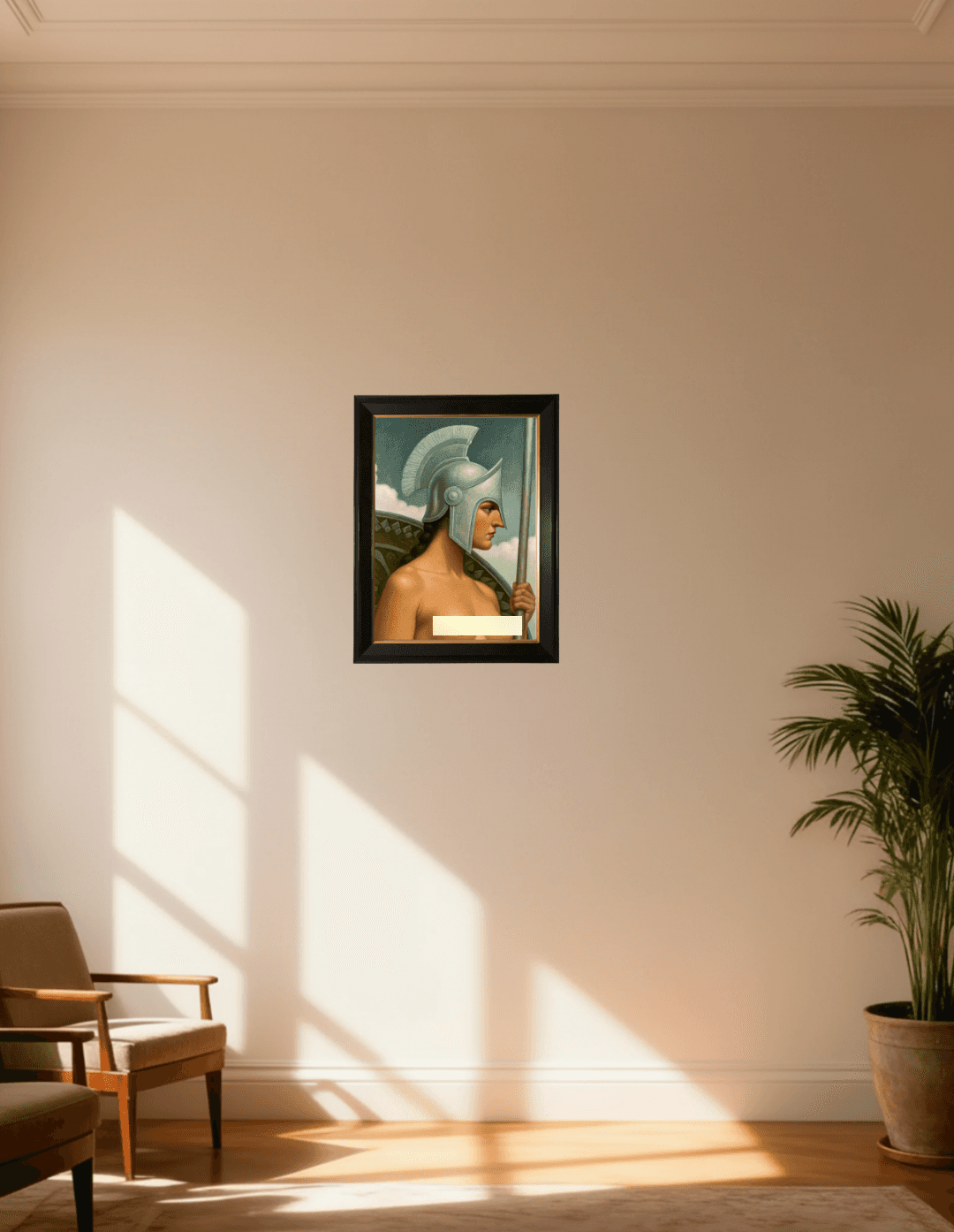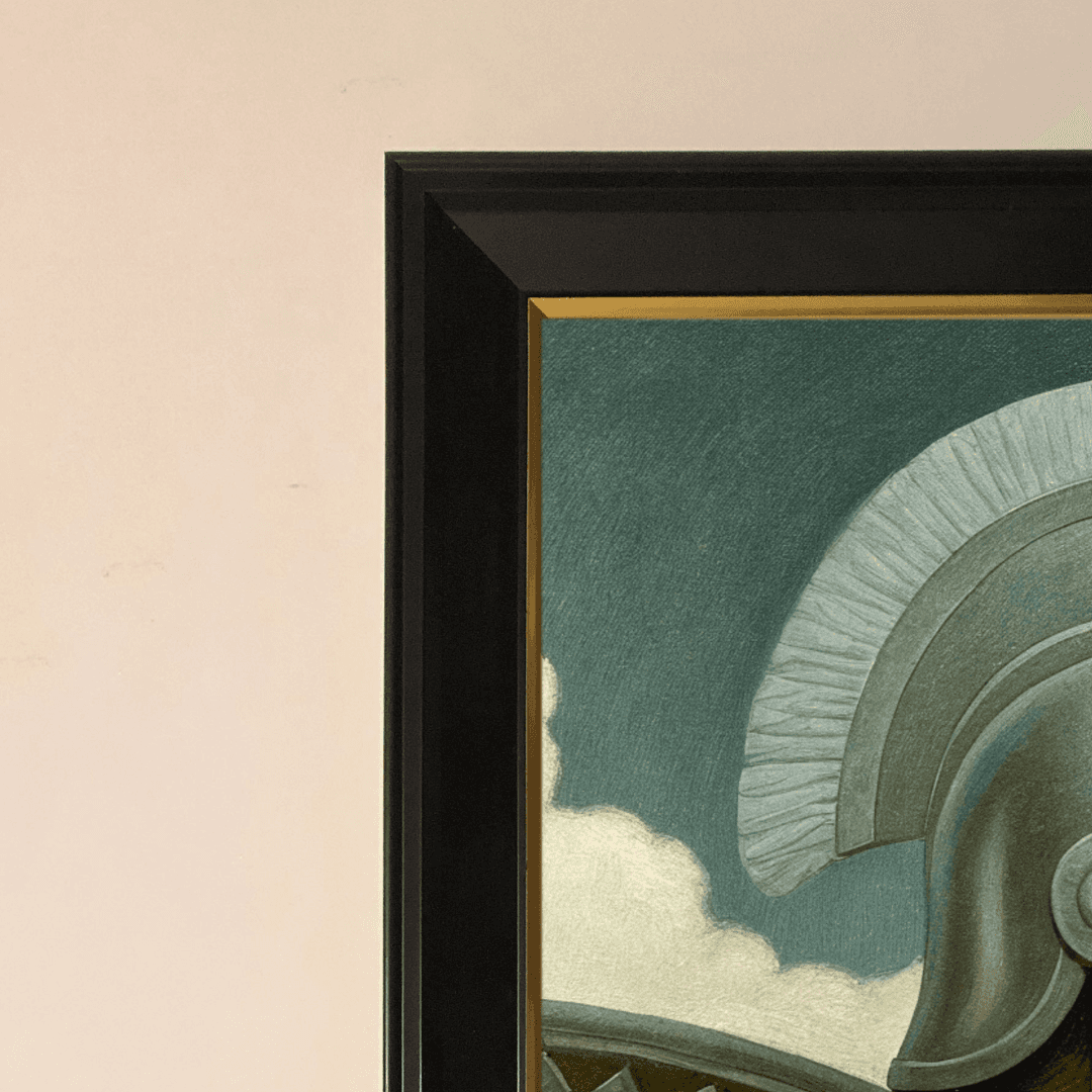 กรอบรูปสีดำด้านขอบทอง ภาพพิมพ์ สไตล์สีฝุ่นบนผ้าใบ Warrior Portrait