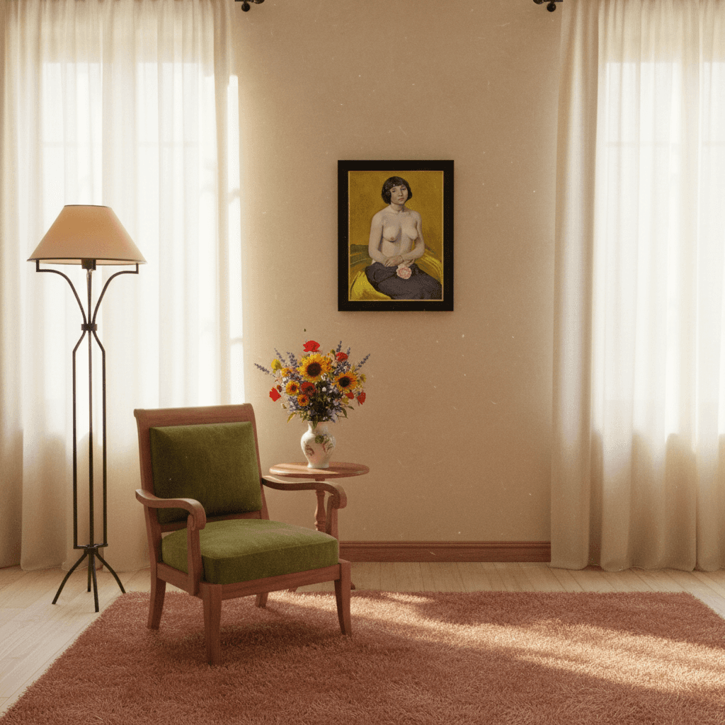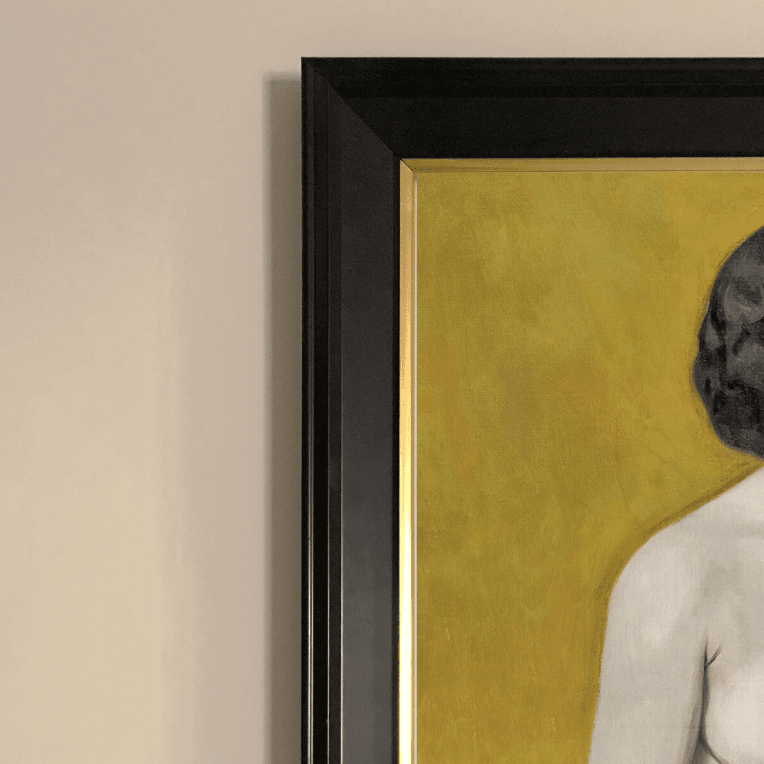 กรอบรูปสีดำด้านขอบทอง ภาพพิมพ์ Woodcut บนผ้าใบ ภาพ Woman With Rose (1914) Félix Vallotton (French, 1865-1925)