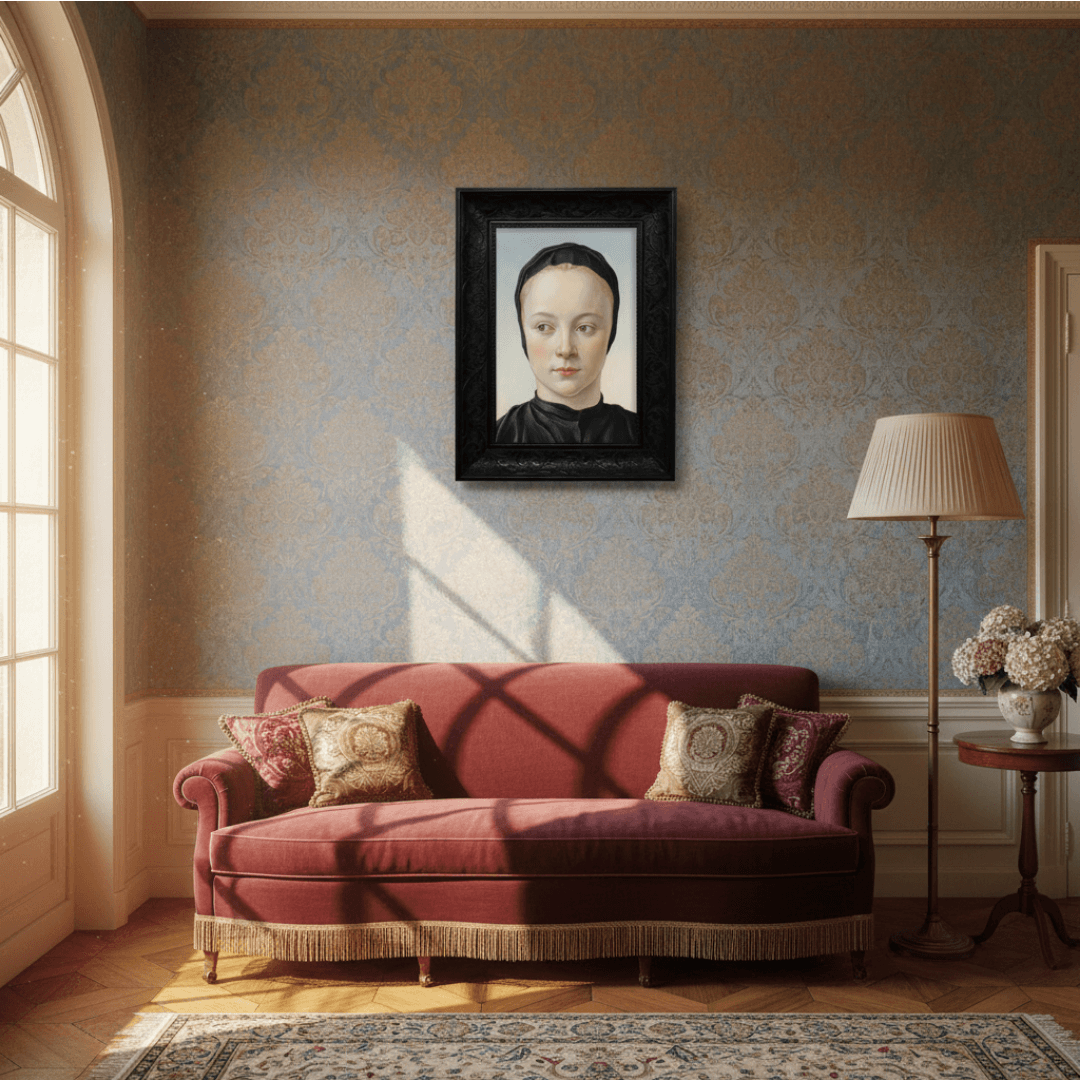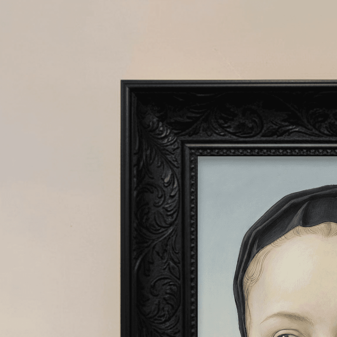 กรอบรูปลายหลุยส์ สีดำด้าน งานภาพพิมพ์ สไตล์ สีน้ำมันบนผ้าใบ ภาพ The lady portrait inspired by SANDRO BOTTICELLI