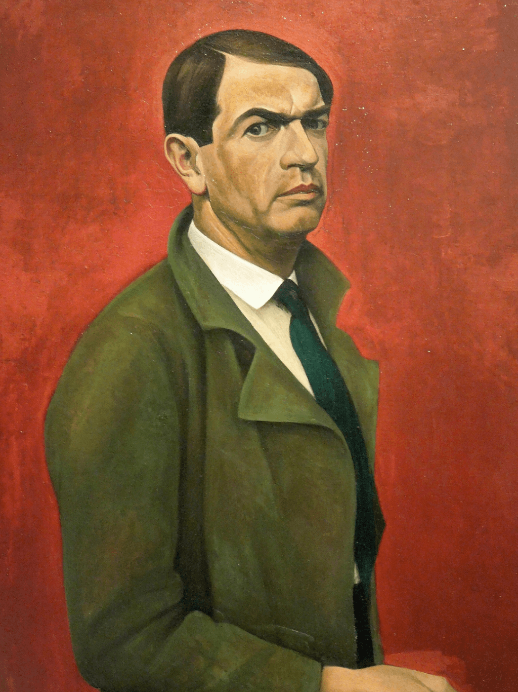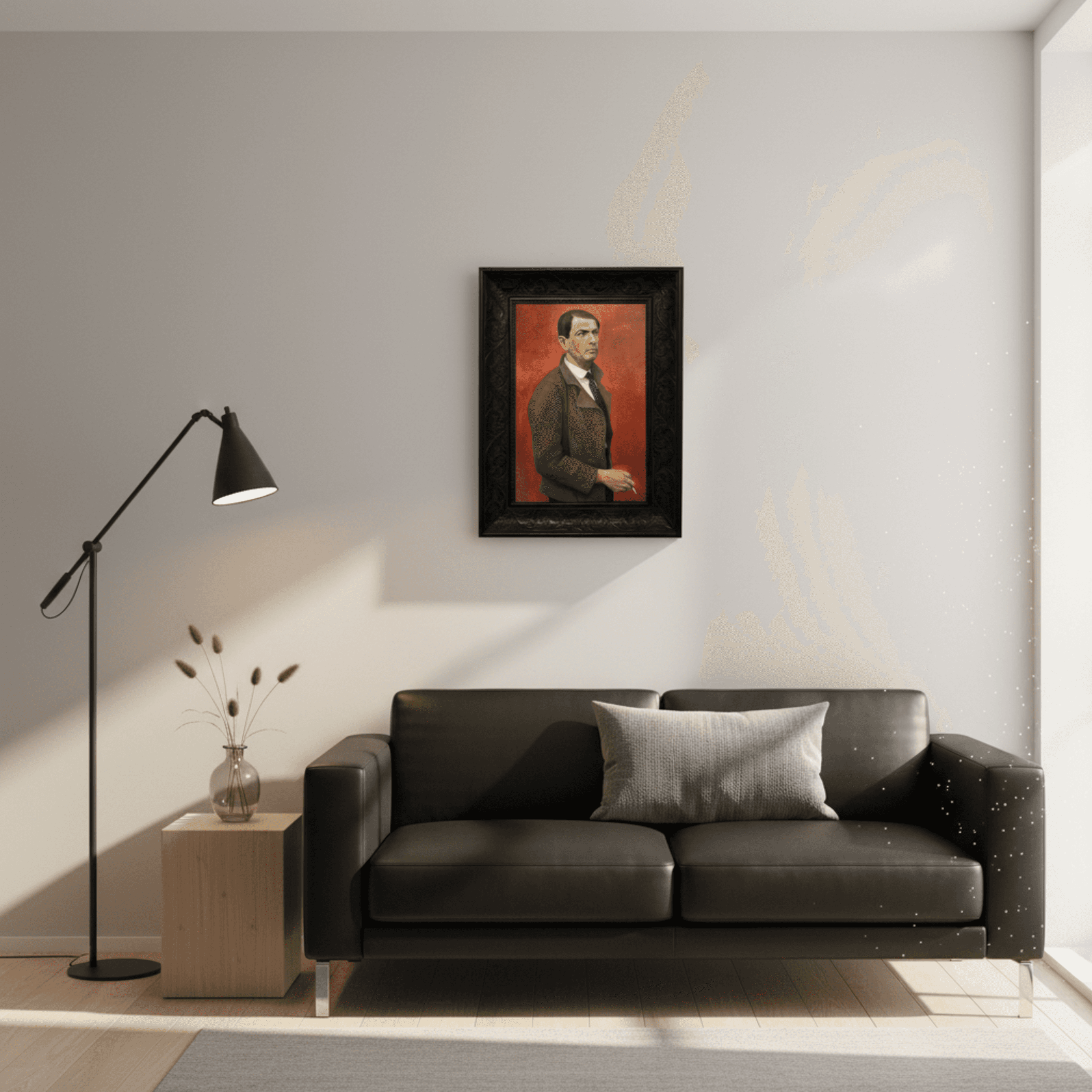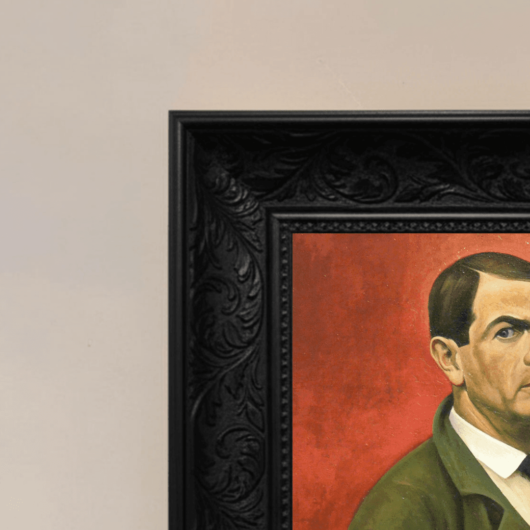 กรอบรูปลายหลุยส์ สีดำด้าน งานภาพพิมพ์ สไตล์ สีน้ำมันบนผ้าใบ ภาพ Self-Portrait (1929) Alexander Kanoldt (German, 1881-1939)