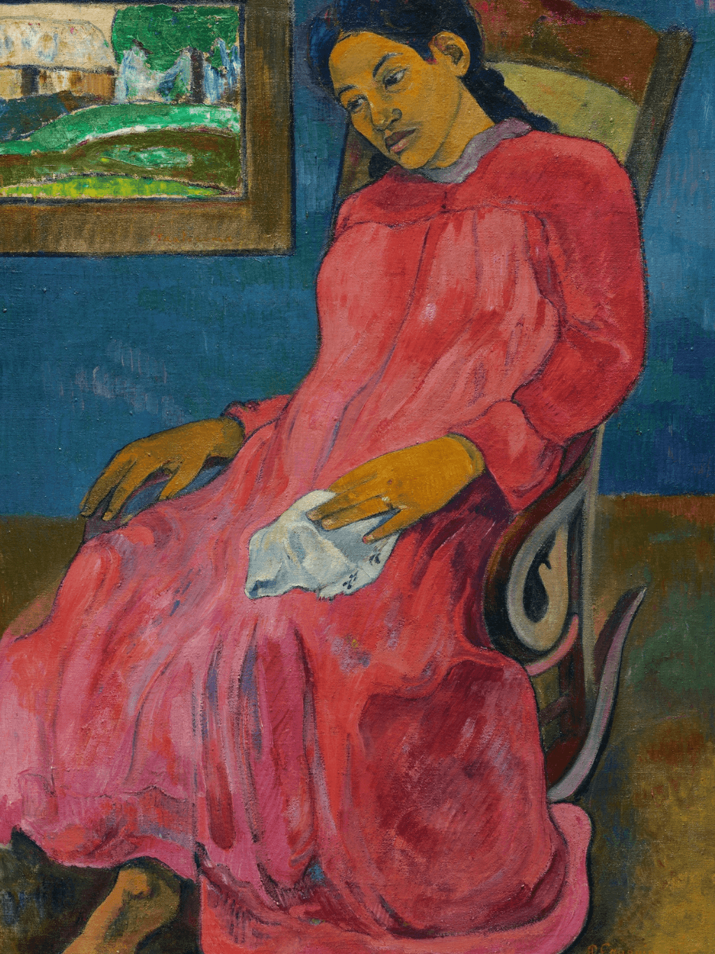 กรอบรูปลายหลุยส์ สีดำด้าน งานภาพพิมพ์ สไตล์ สีน้ำมันบนผ้าใบ ภาพ Faaturuma (Melancholic) Paul Gauguin (French, 1848-1903)