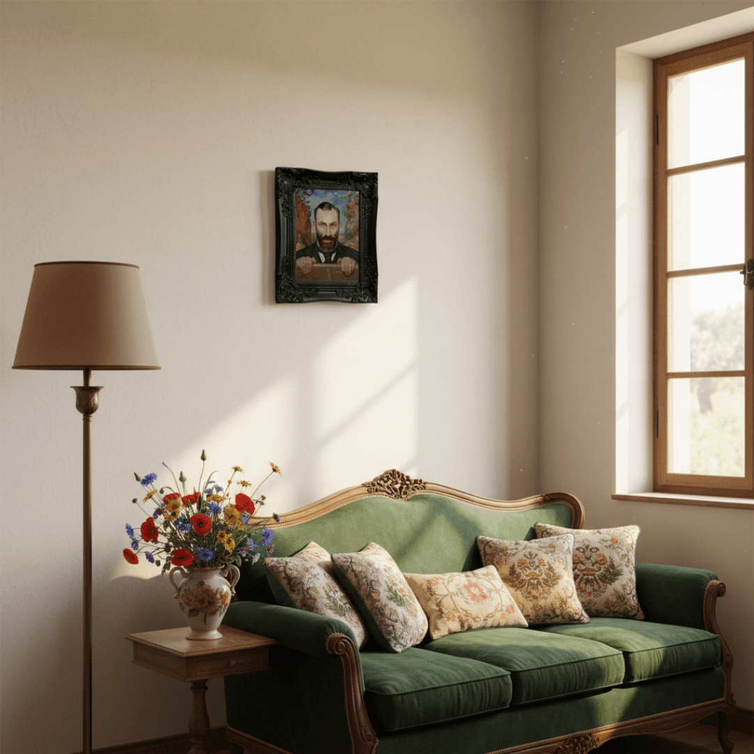 กรอบรูปลายหลุยส์ สีดำด้าน งานภาพพิมพ์ สไตล์ สีน้ำมันบนผ้าใบ ภาพ Portrait of Feliks Jasieński (1903) Jacek Malczewski (Polish, 1854–1929)
