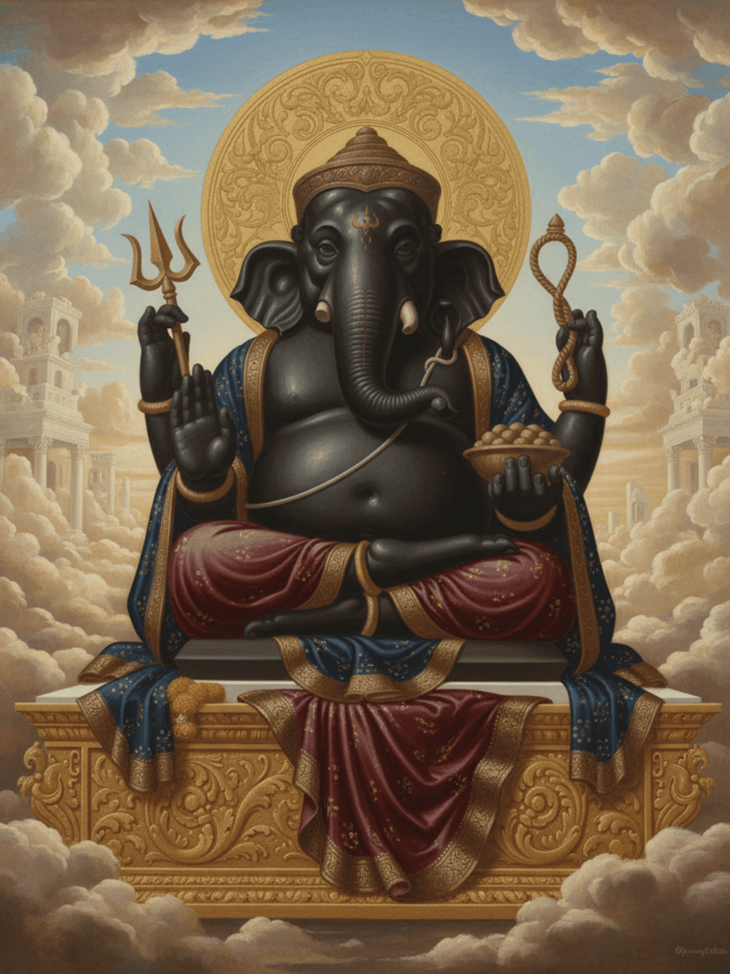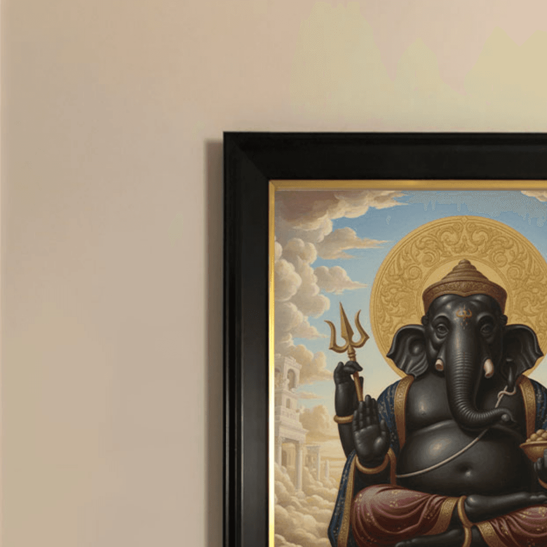 กรอบรูปไม้แท้ สีดำด้าน ภาพพิมพ์ พระพิฆเนศ