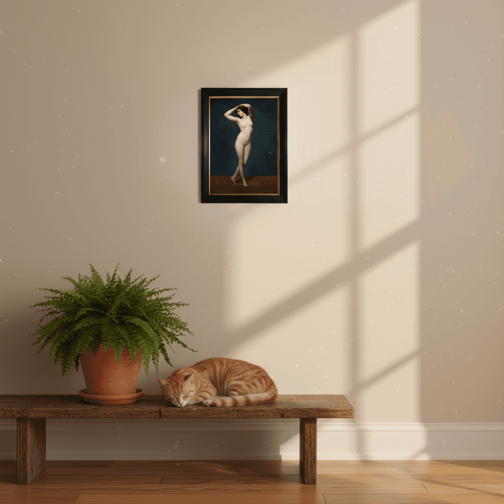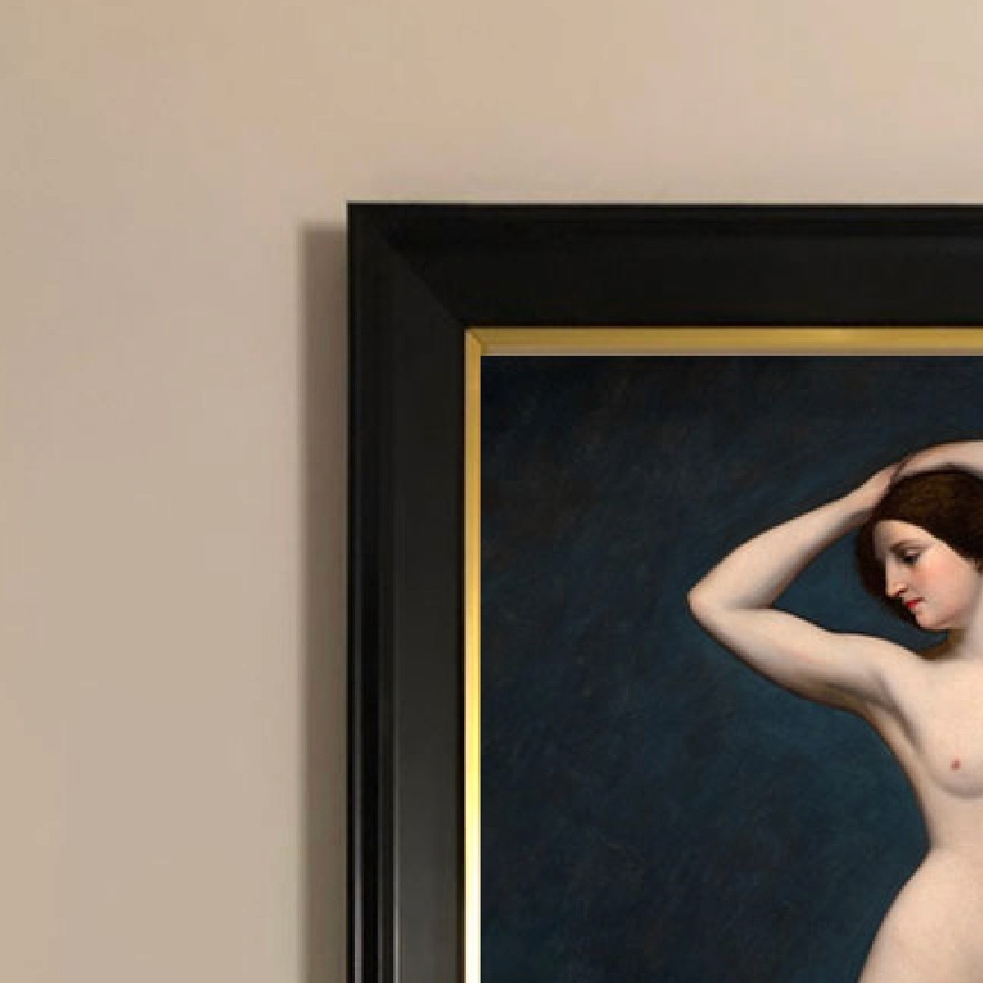 กรอบรูปสีดำด้านขอบทอง ภาพพิมพ์ สไตล์สีน้ำมัน บนผ้าใบ ภาพ Erotic Post