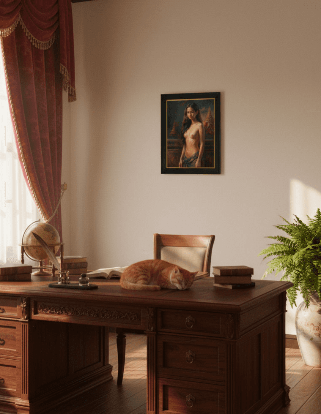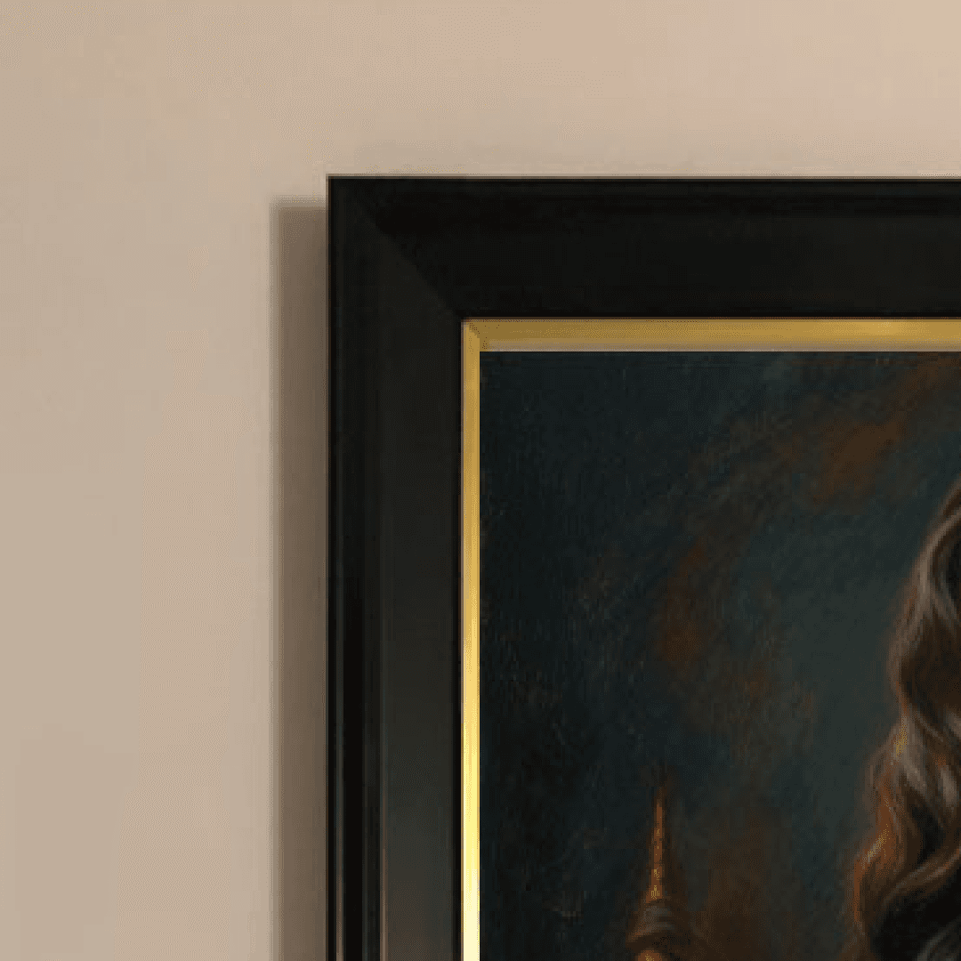 กรอบรูปสีดำด้านขอบทอง ภาพพิมพ์ สไตล์สีฝุ่น บนผ้าใบ ภาพ Erotic Portrait