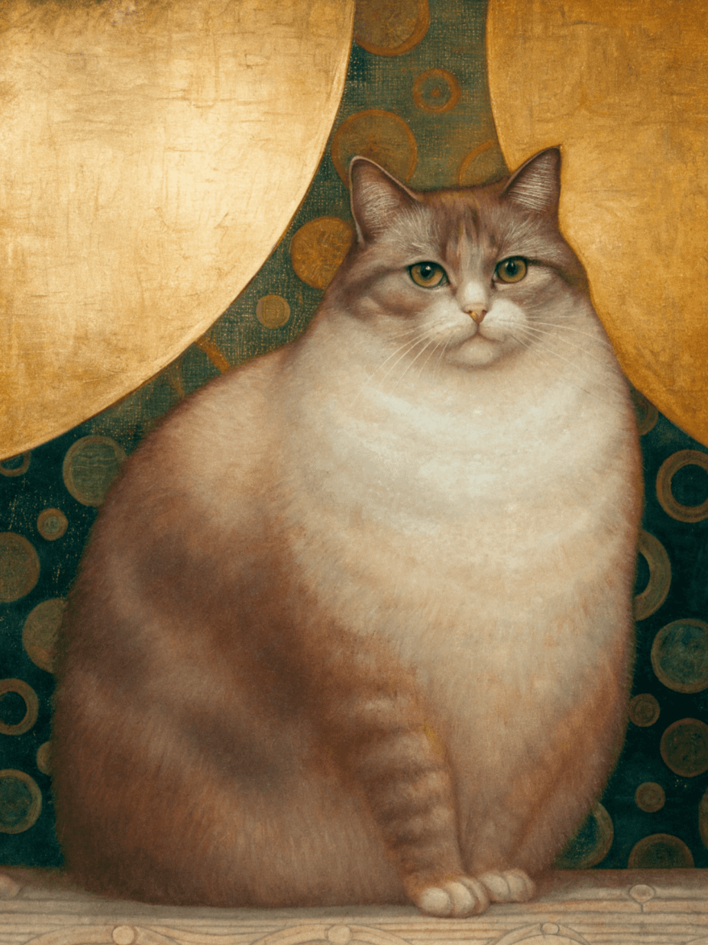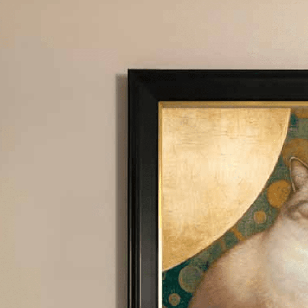 กรอบรูปไม้แท้ สีดำด้าน ภาพพิมพ์ The Fat Cat Portrait