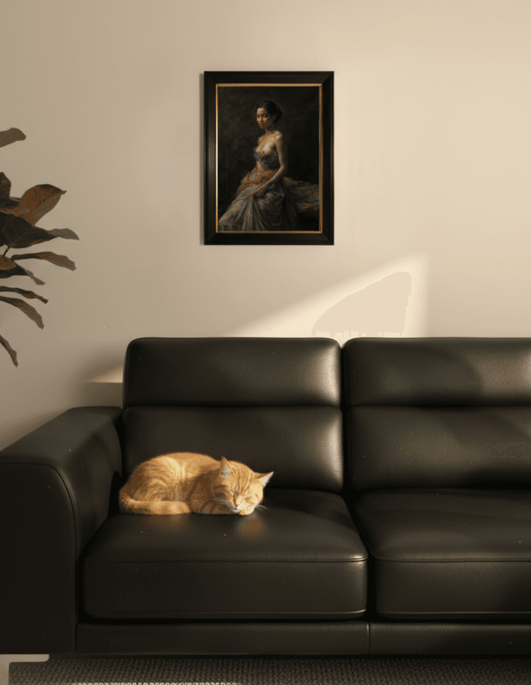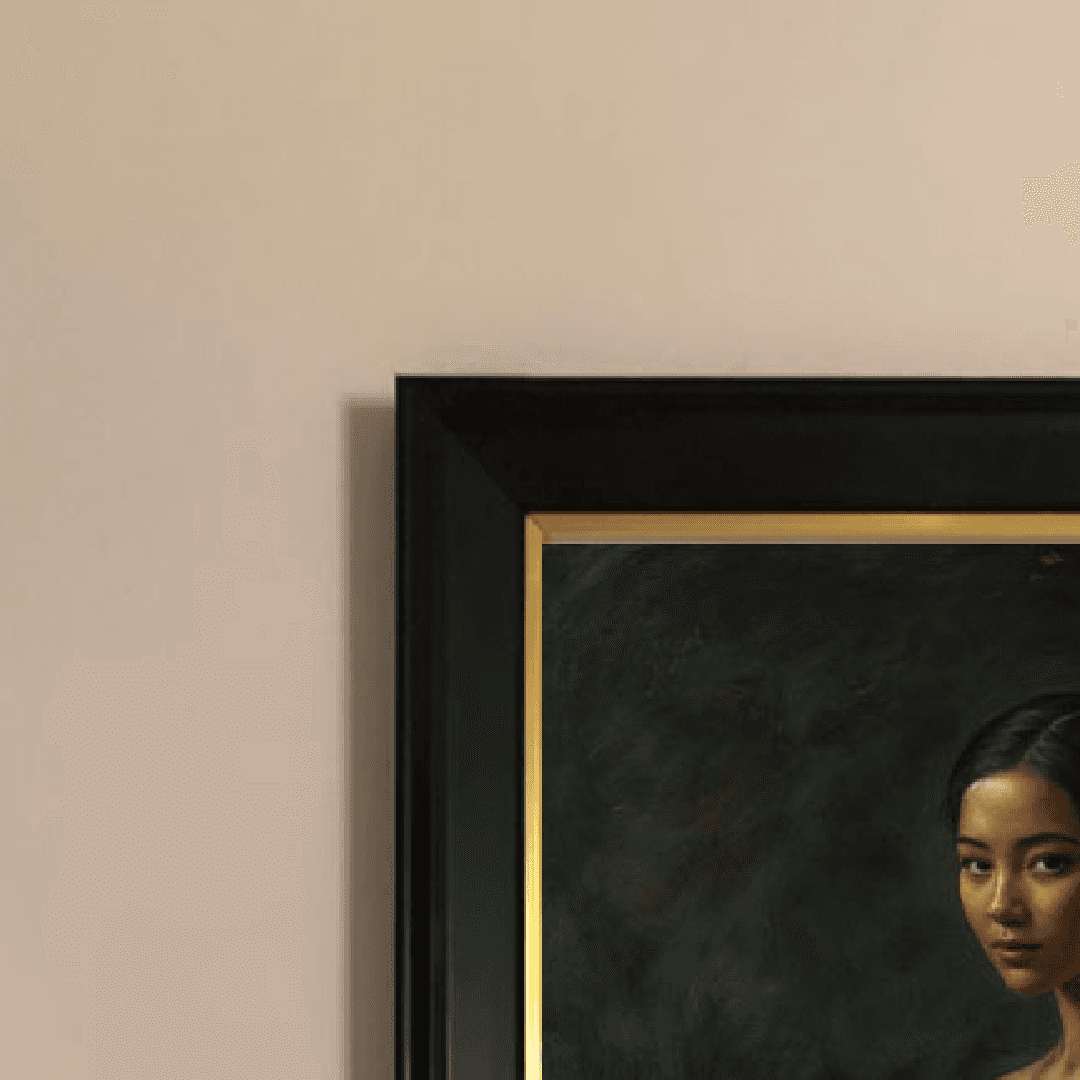 กรอบรูปสีดำด้านขอบทอง ภาพพิมพ์ สไตล์สีน้ำมัน บนผ้าใบ ภาพ Thai Portrait