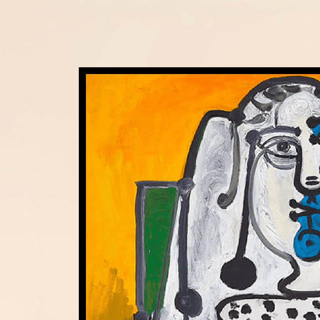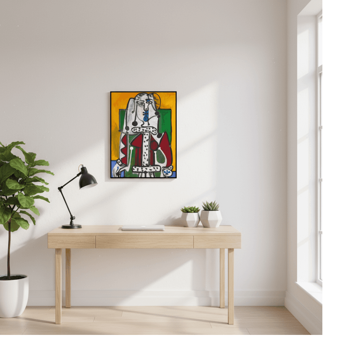 กรอบรูปโลหะสีดำ ภาพพิมพ์ บนผ้าใบ ภาพ Woman in an Armchair 1948 ของ Pablo Picasso