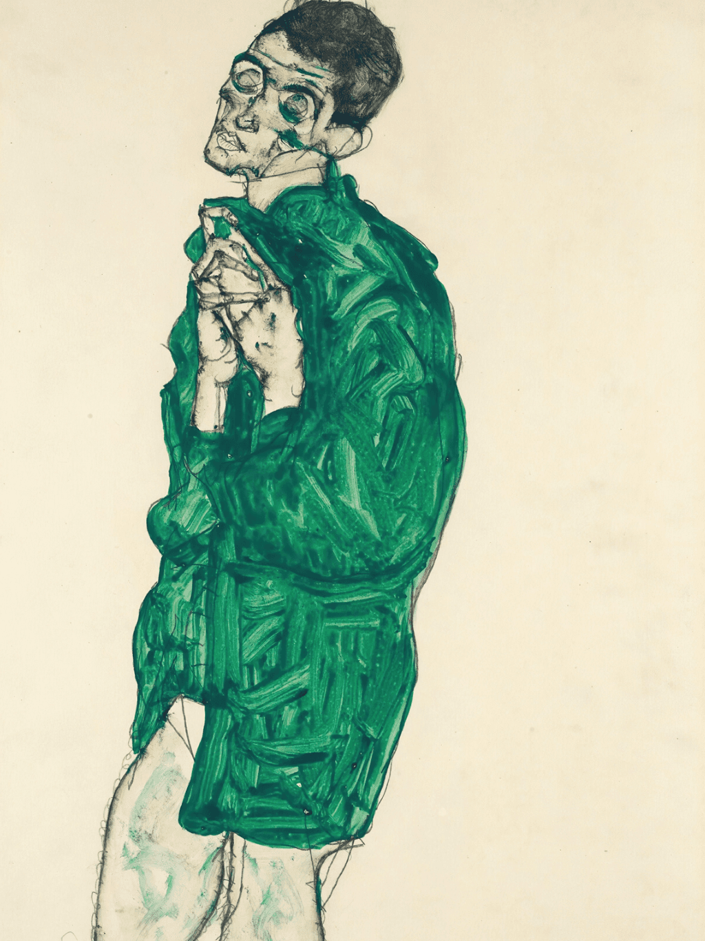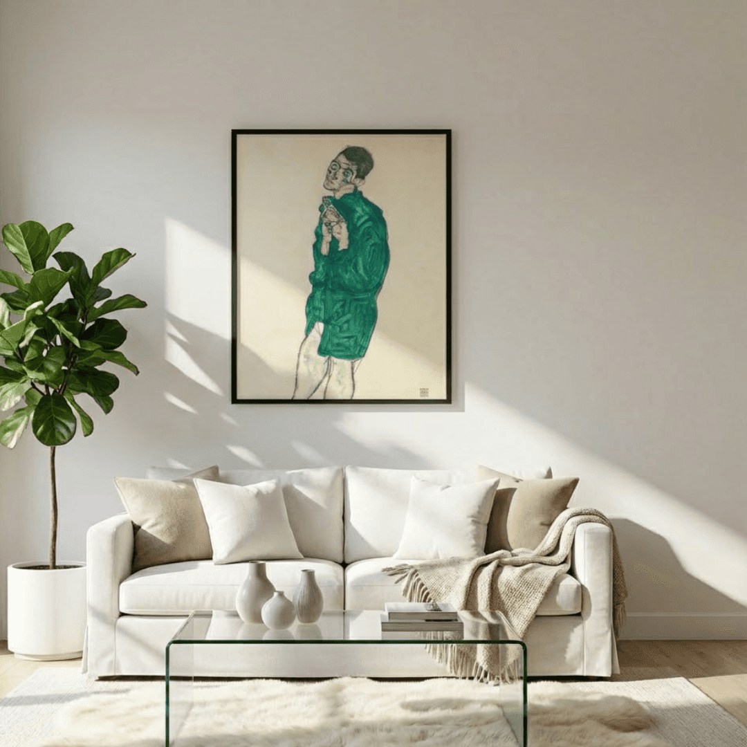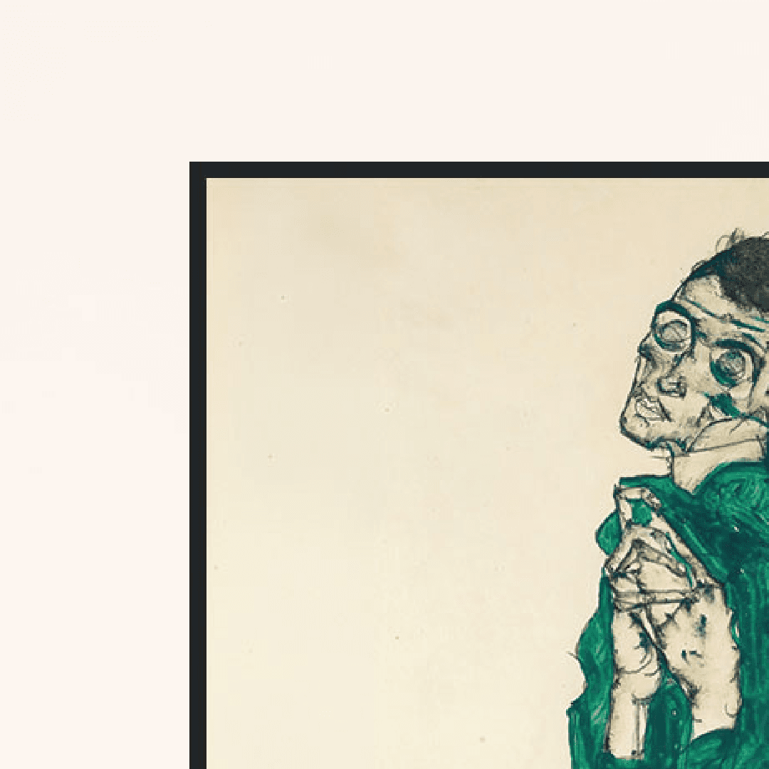 กรอบรูปอลูมิเนียมดำน้ำหนักเบาด้านหน้าติดฟิล์มใสของใหม่จากญี่ปุ่น ภาพ Self-Portrait In Green Shirt With Eyes Closed (1914) Egon Schiele (Austrian, 1890-1918)