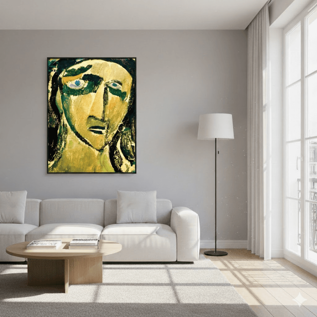 กรอบรูปอลูมิเนียมดำน้ำหนักเบาด้านหน้าติดฟิล์มใสของใหม่จากญี่ปุ่น ภาพ Madwoman Witch -Head (c.1914) Amadeo de Souza-Cardoso (Portuguese, 1887 – 1918)
