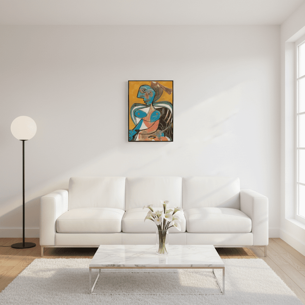 กรอบรูปโลหะสีดำด้าน ภาพพิมพ์ สไตล์ สีน้ำมัน บนผ้าใบ ภาพ Portrait of Lee Miller 1938 ของ Pablo Picasso