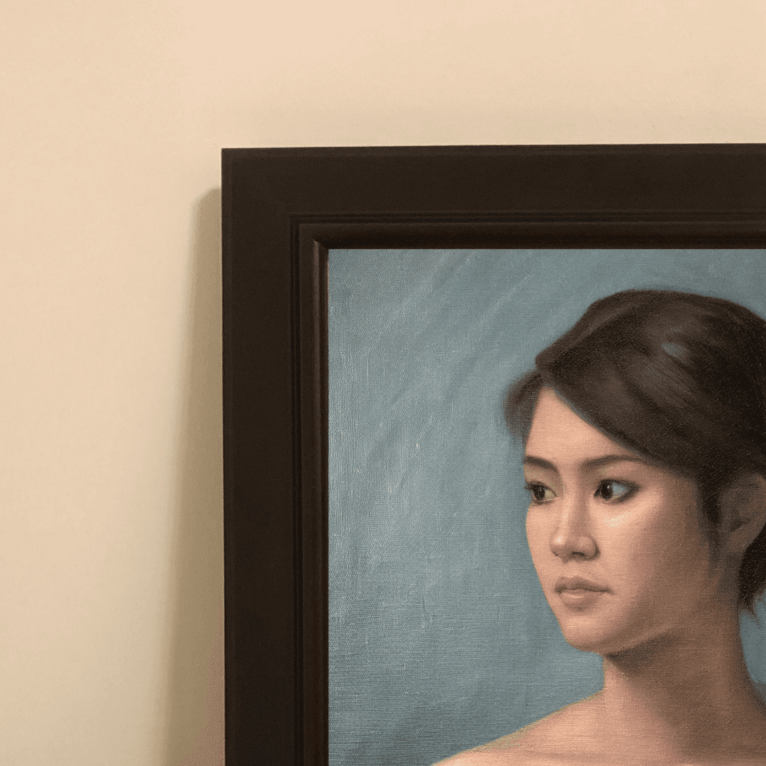 กรอบรูปไม้สภาพใหม่เก่าเก็บ ภาพพิมพ์ สไตล์สีฝุ่น บนผ้าใบ Thai Portrait