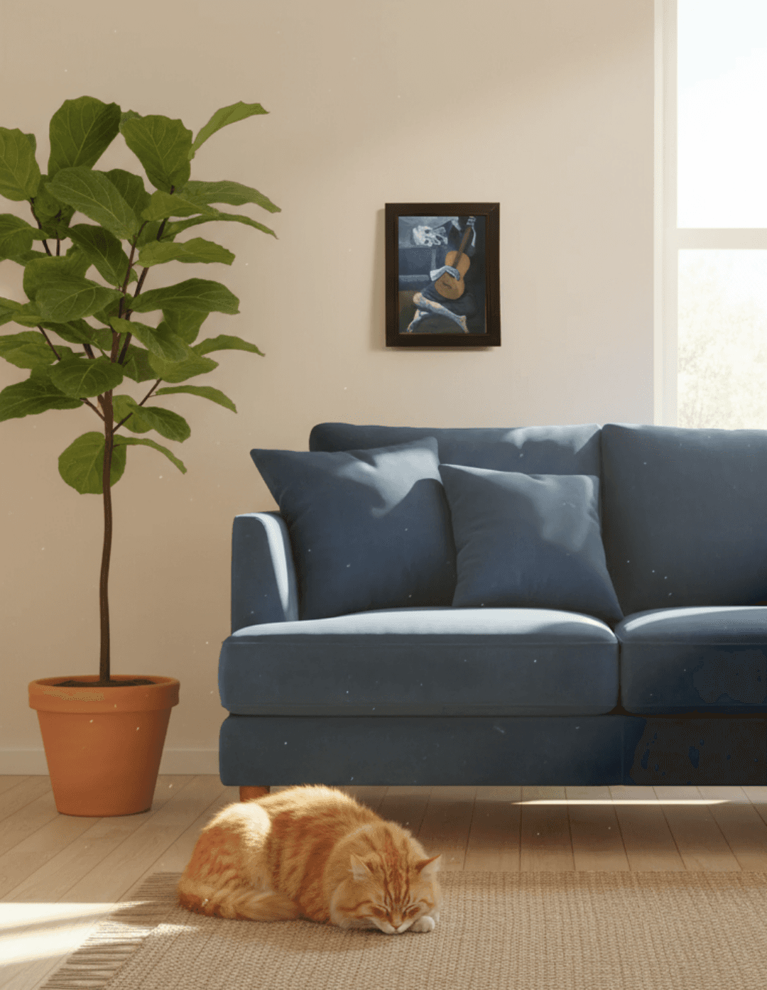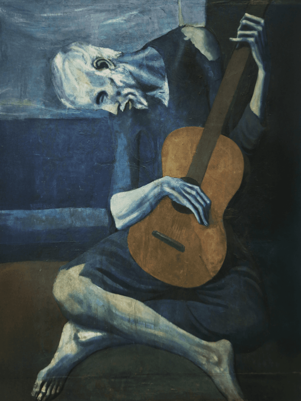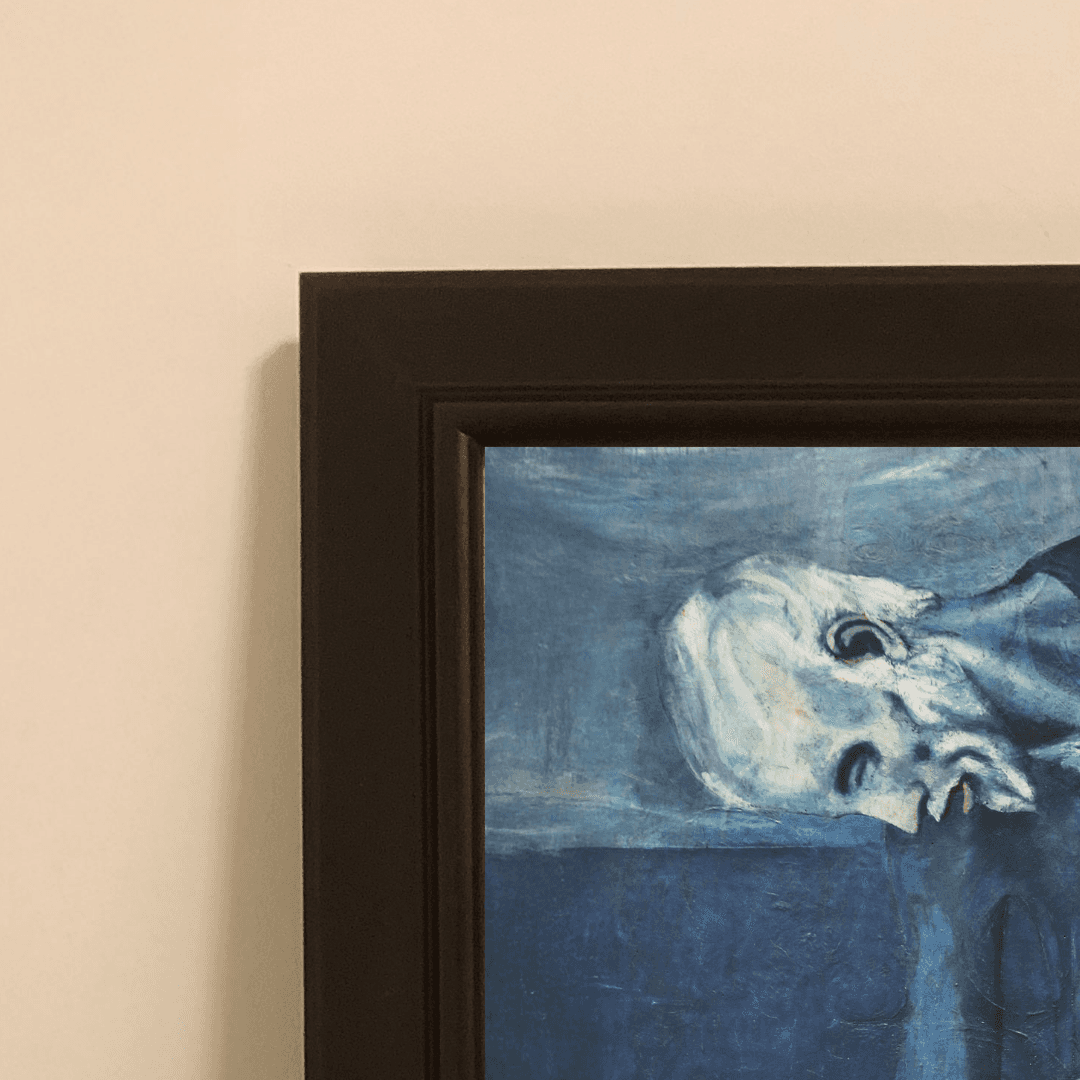 กรอบรูปไม้สภาพใหม่เก่าเก็บ ภาพพิมพ์ สไตล์สีฝุ่น บนผ้าใบ ภาพ The Old Guitarist ของ Pablo Picasso