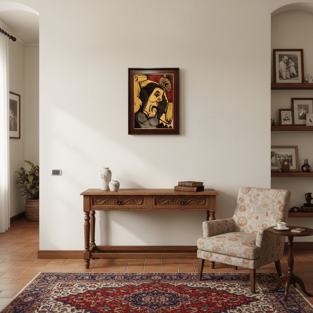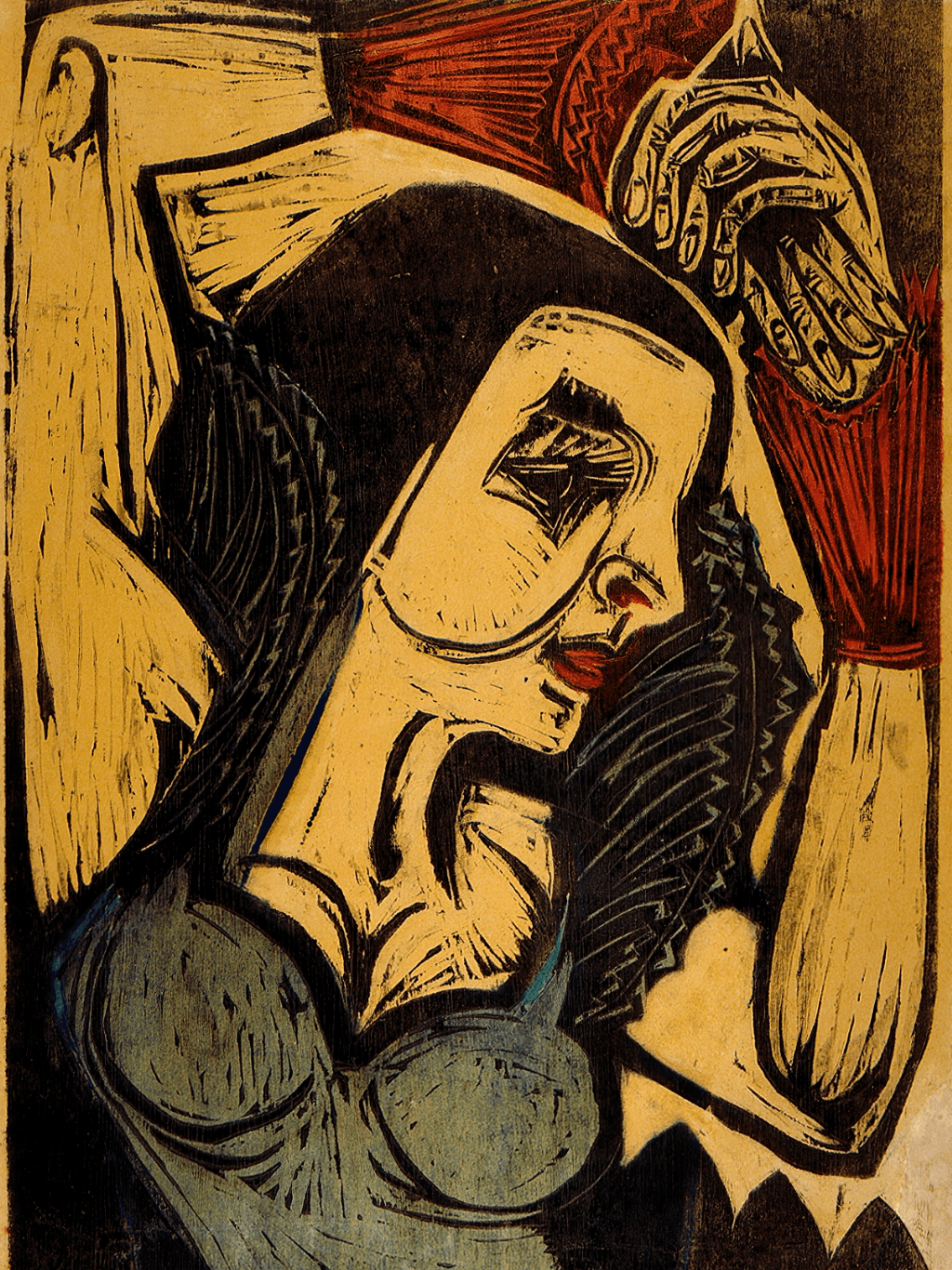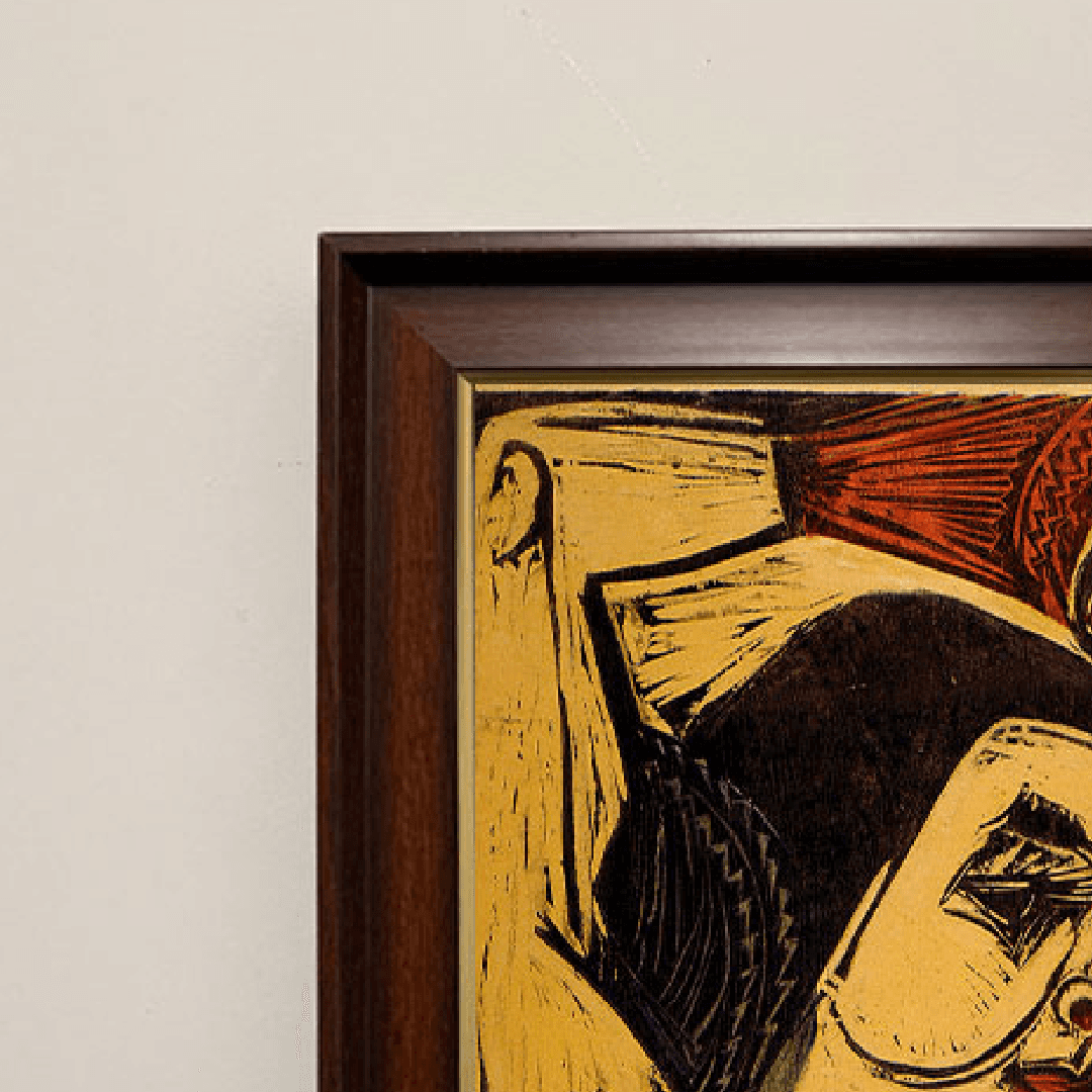 กรอบรูปลายไม้ งานภาพพิมพ์ สไตล์ wood cut บนผ้าใบ ภาพ Poster of Nina Hard (1921) Ernst Ludwig Kirchner (German, 1880-1938)
