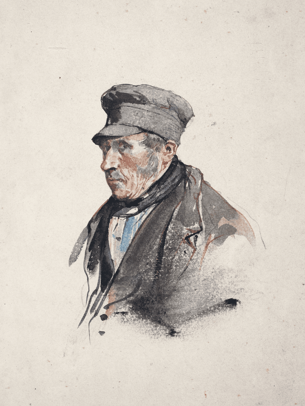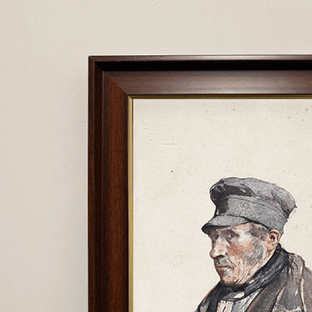 กรอบรูปลายไม้ งานภาพพิมพ์ สไตล์ บนผ้าใบ ภาพ Bust of farmer with cap (1879) Floris Verster (Dutch, 1861-1927)