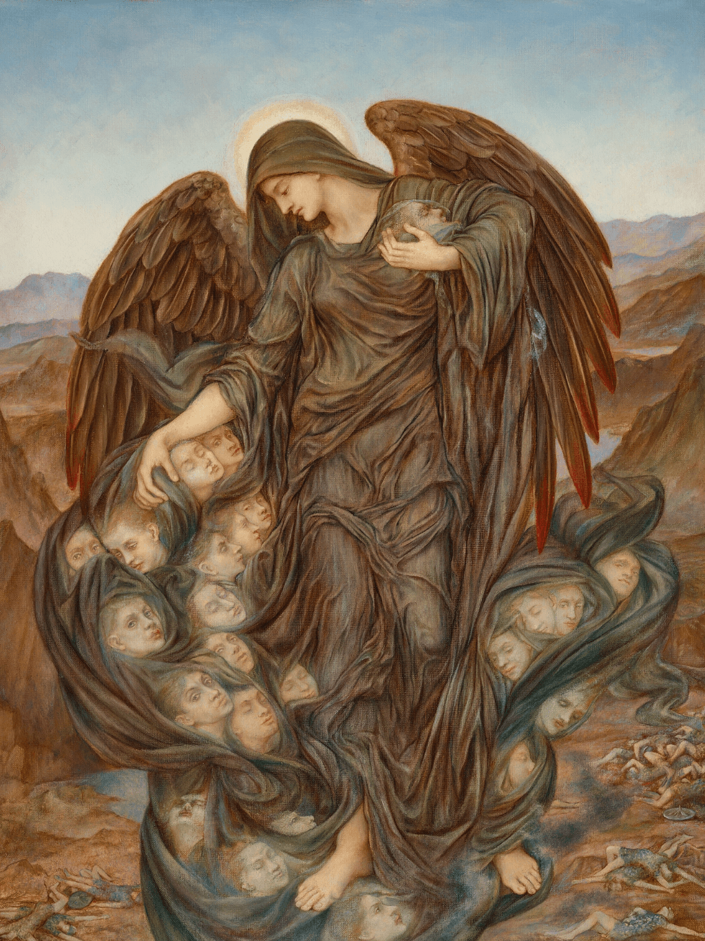 กรอบรูปลายไม้ งานภาพพิมพ์ สไตล์ บนผ้าใบ ภาพ The Field of the Slain Evelyn De Morgan (English, 1855-1919)