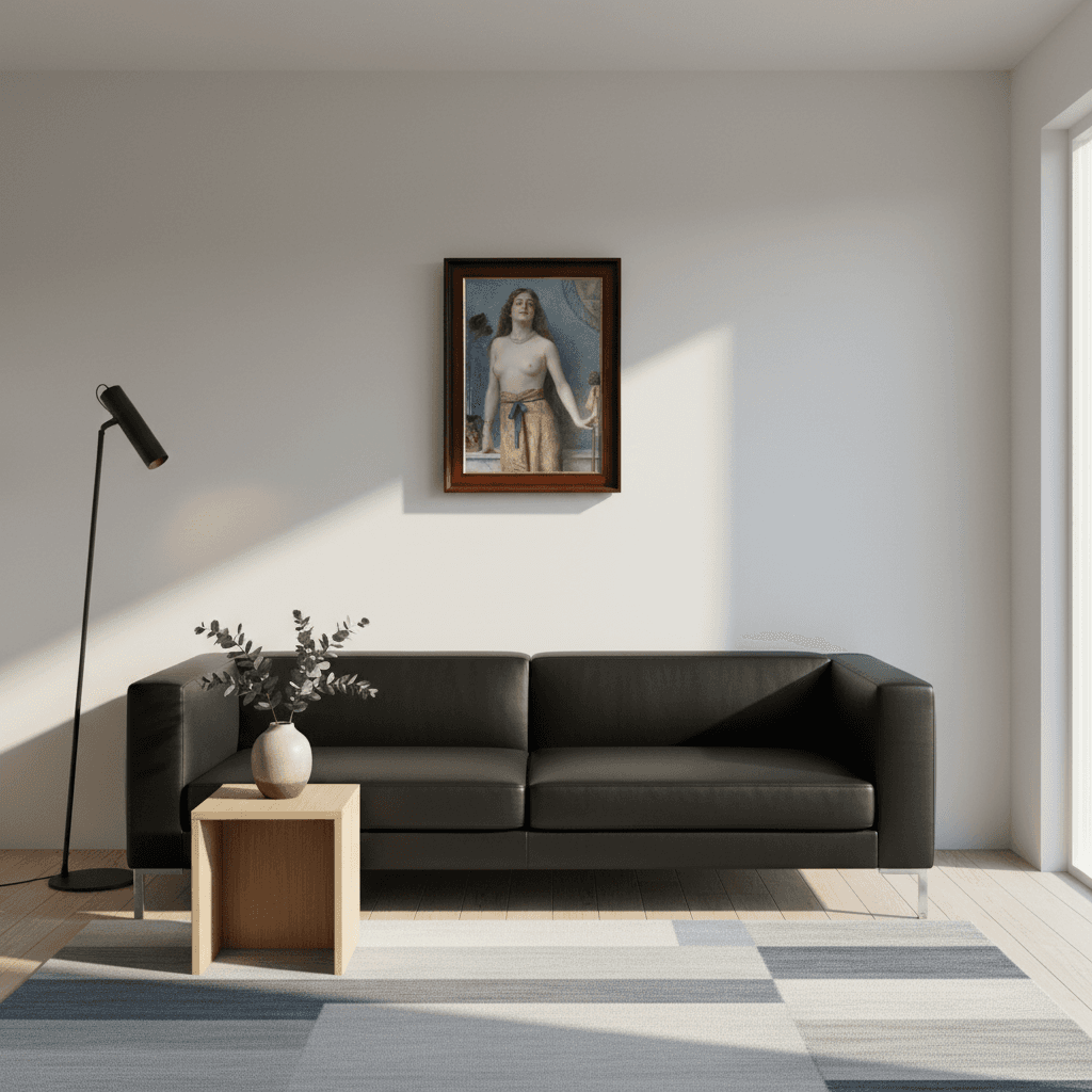 กรอบรูปลายไม้ งานภาพพิมพ์ สไตล์ บนผ้าใบ ภาพ Young bacchante with thrysos staff (1899) Max Nonnenbruch (German, 1857-1922)