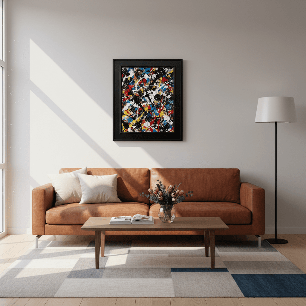 กรอบรูปสีดำด้านขอบทอง ภาพพิมพ์ บนผ้าใบ ภาพ Abstract Style