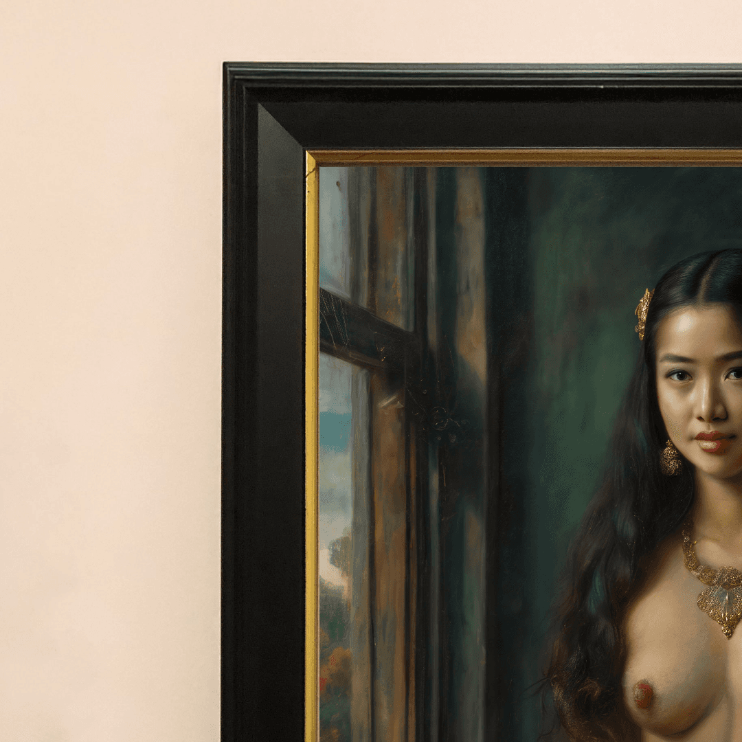 กรอบรูปสีดำด้านขอบทอง ภาพพิมพ์ บนผ้าใบ ภาพ Thai portrait