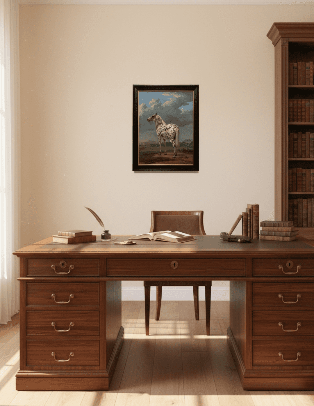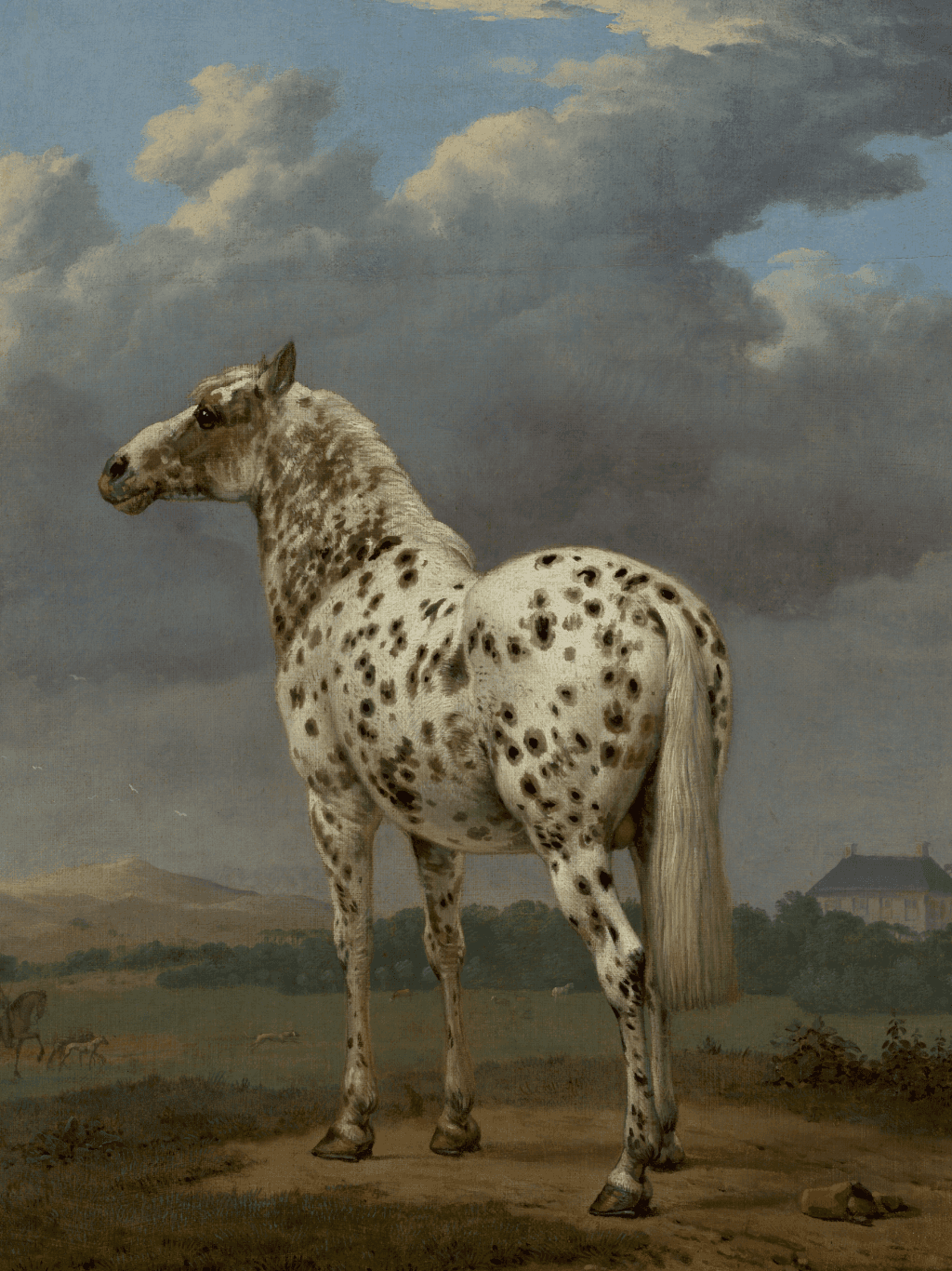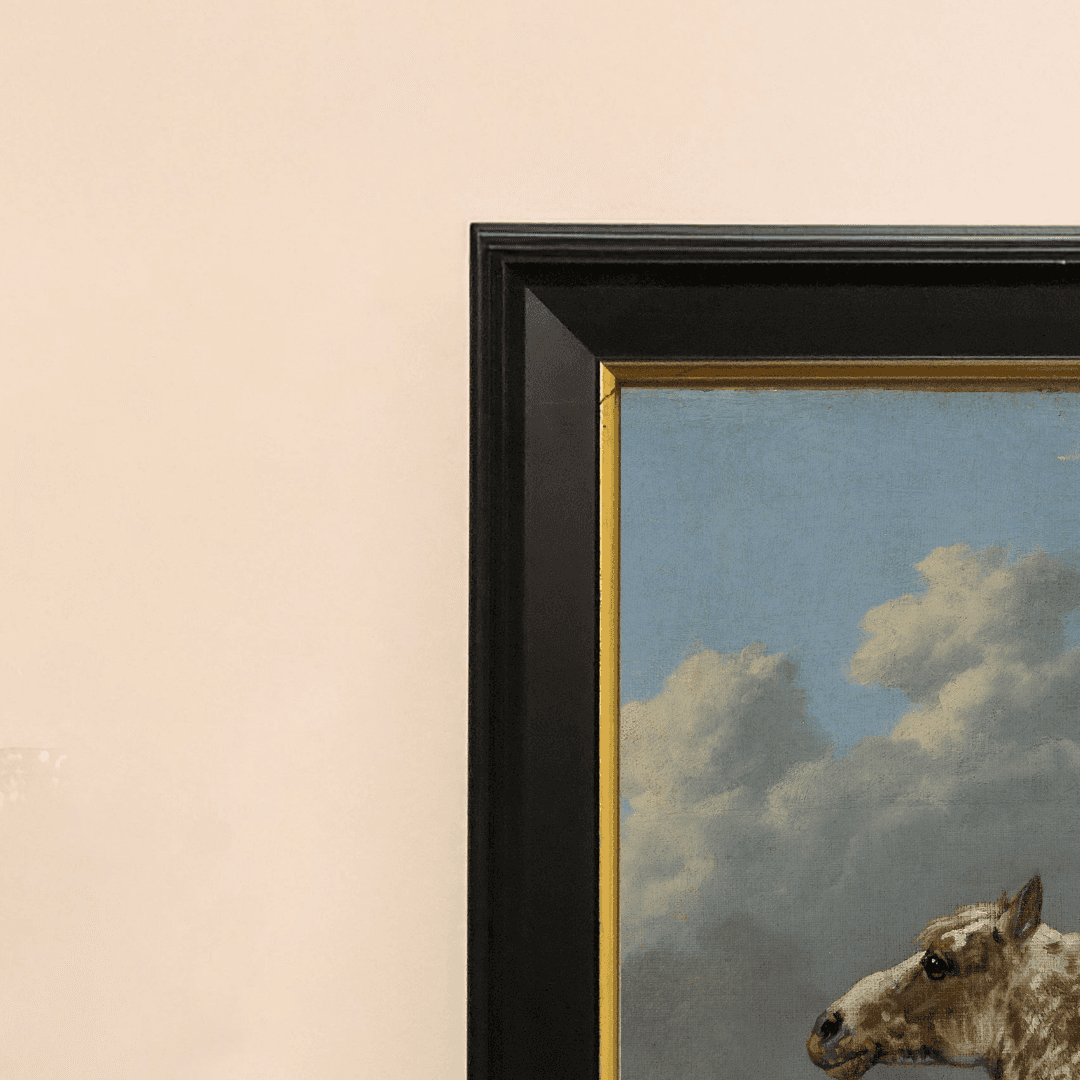 กรอบรูปสีดำด้านขอบทอง ภาพพิมพ์ สไตล์สีน้ำมัน บนผ้าใบ ภาพ The "Piebald" Horse by Paulus Potter (1625–1654)