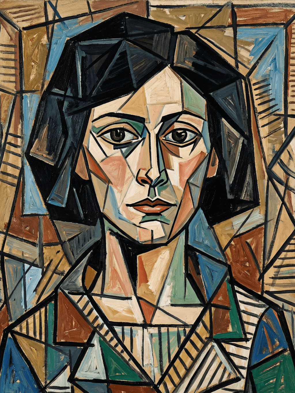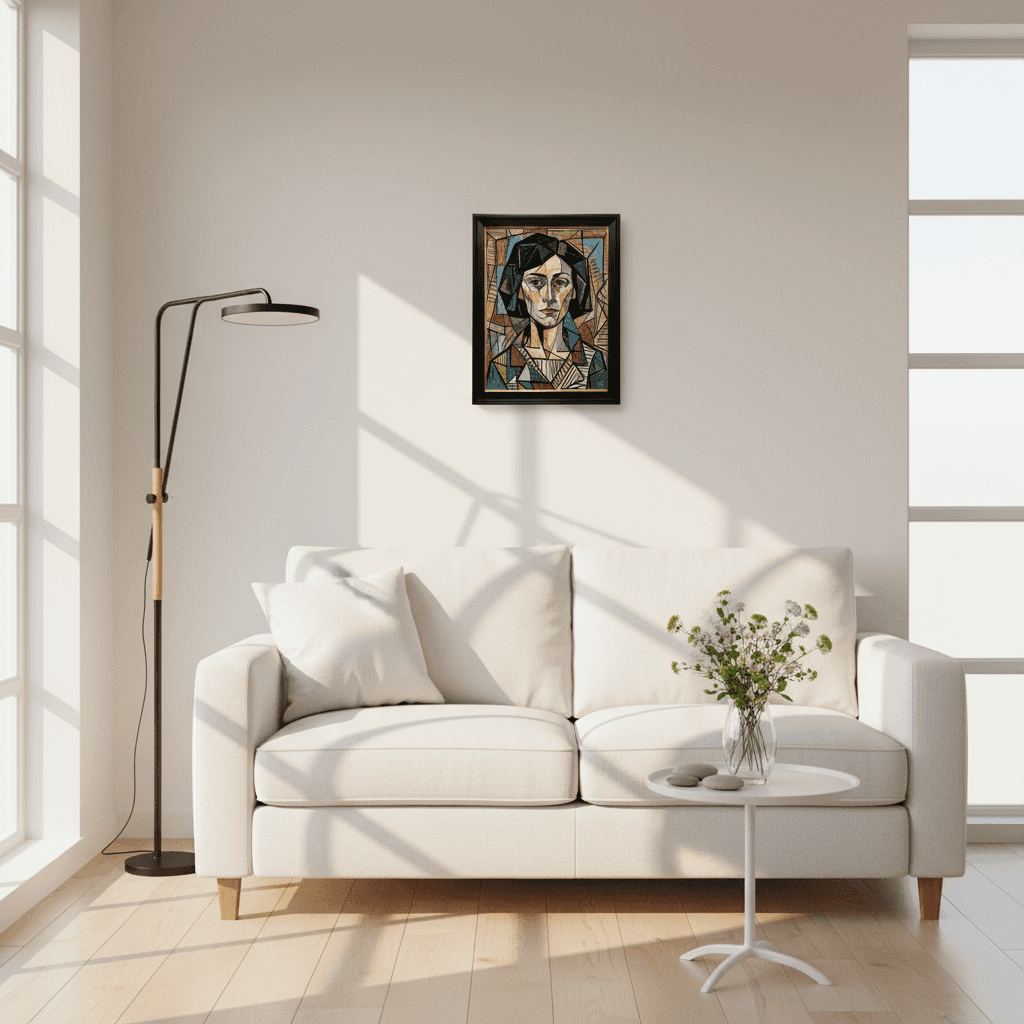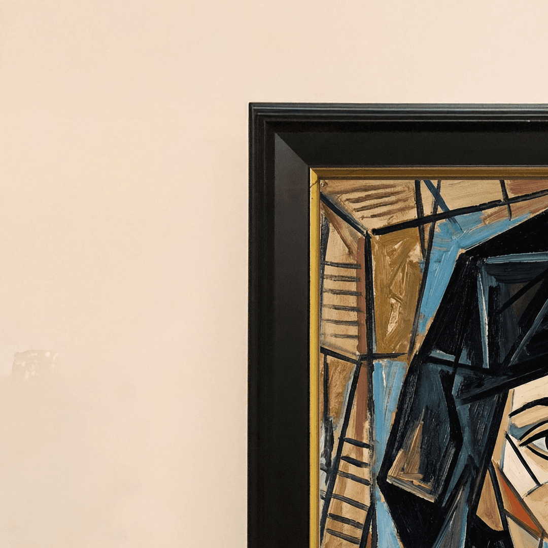 กรอบรูปสีดำด้านขอบทอง ภาพพิมพ์ บนผ้าใบ Re-Imaging Portrait Lady with Picasso Style