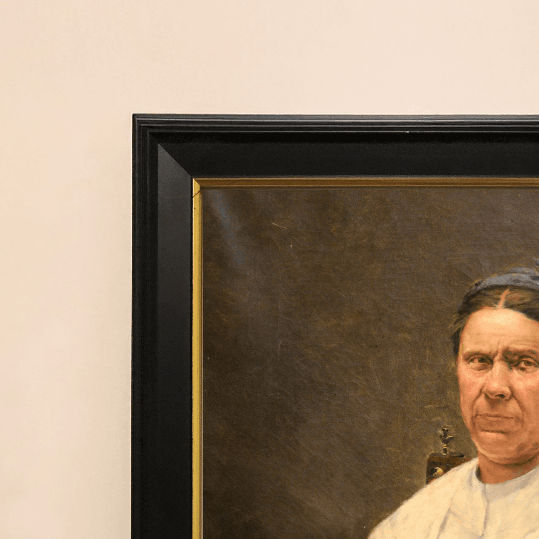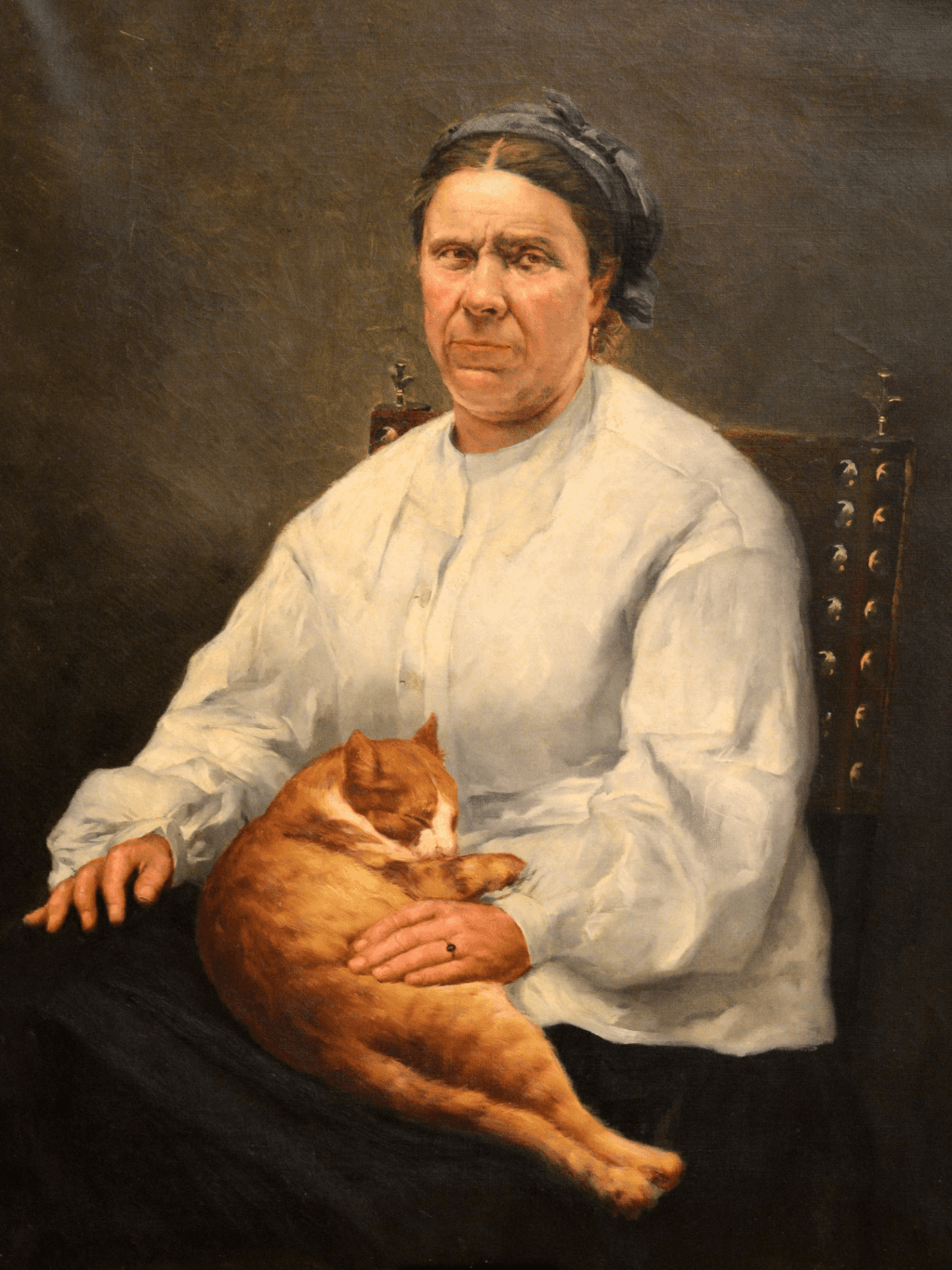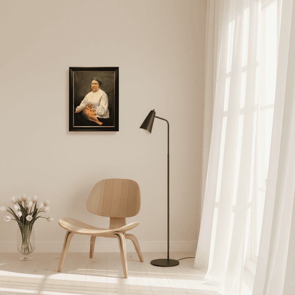 กรอบรูปสีดำด้านขอบทอง ภาพพิมพ์ สไตล์สีน้ำมัน บนผ้าใบ ภาพ The cat's woman (1886) - José Malhoa (1855 - 1933)