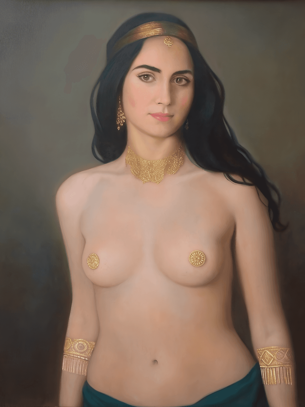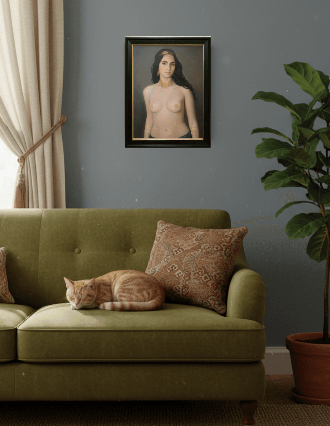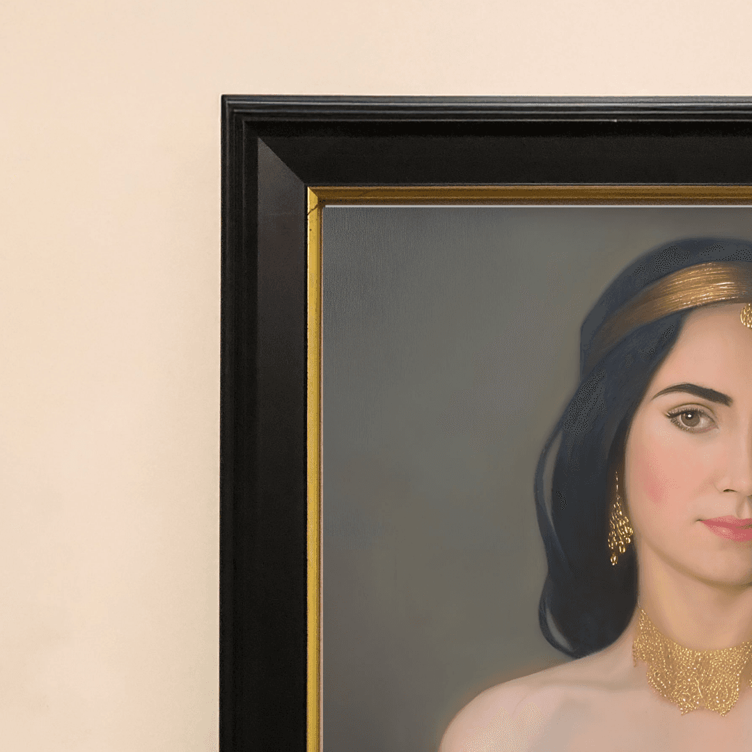 กรอบรูปสีดำด้านขอบทอง ภาพพิมพ์ สไตล์สีฝุ่น บนผ้าใบ ภาพ Erotic Portrait