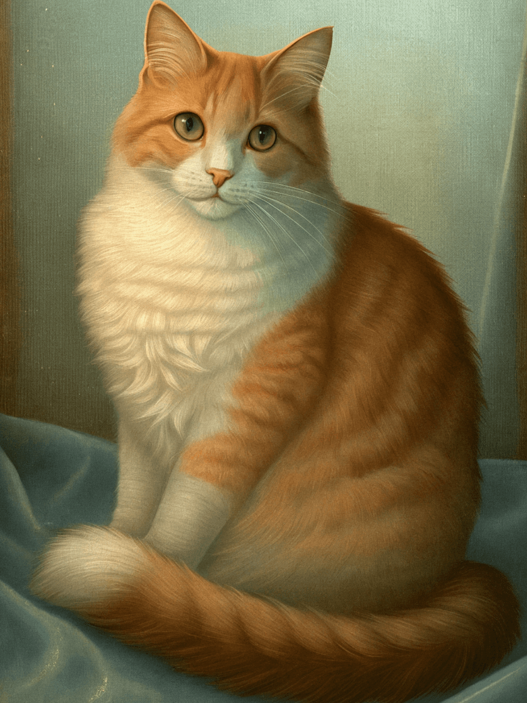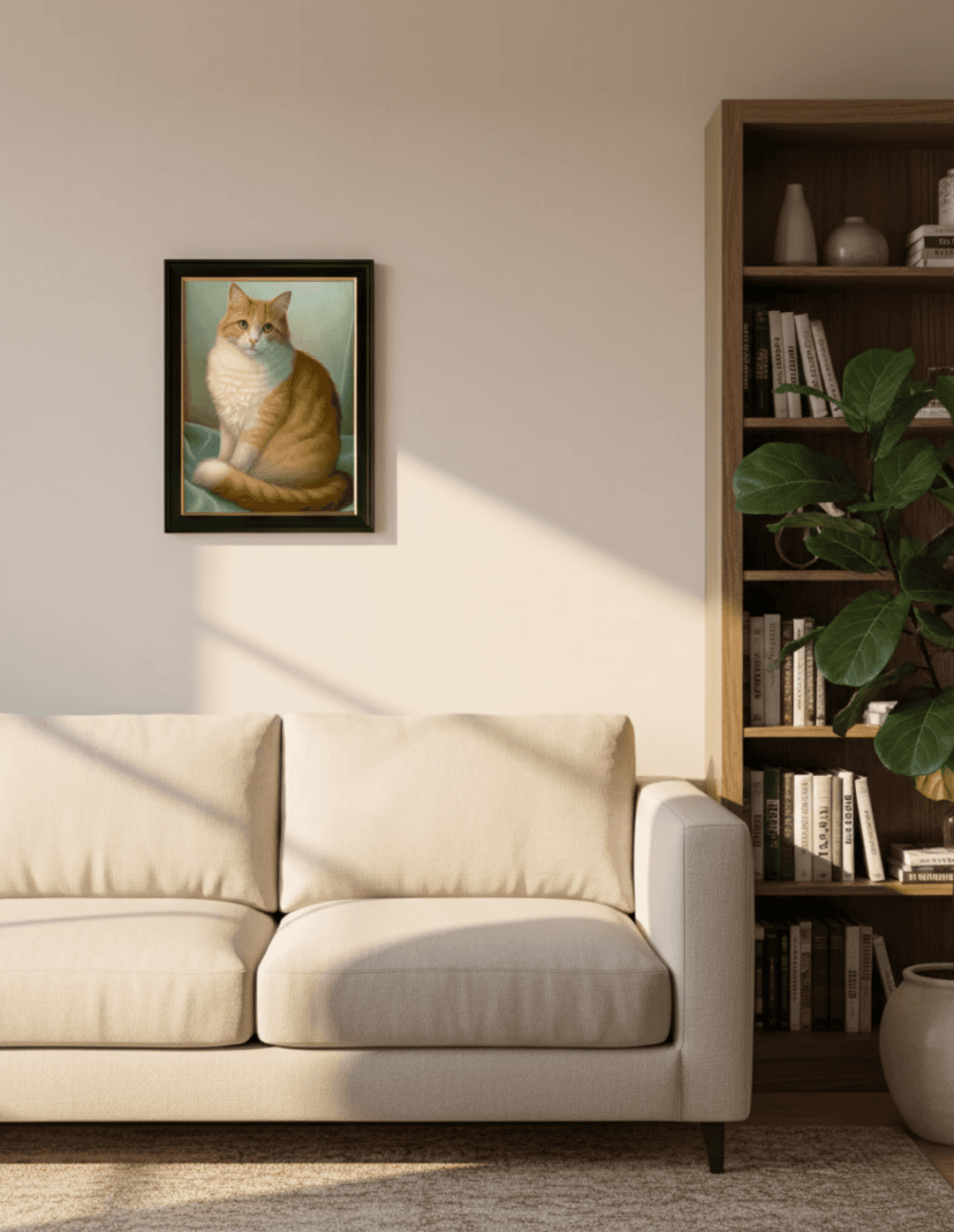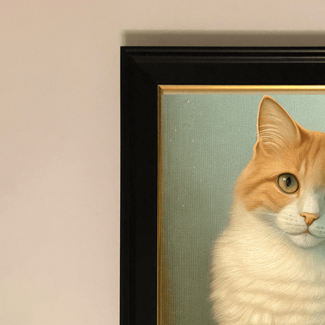 กรอบรูปสีดำด้านขอบทอง ภาพพิมพ์ สไตล์สีน้ำมัน บนผ้าใบ The Cat