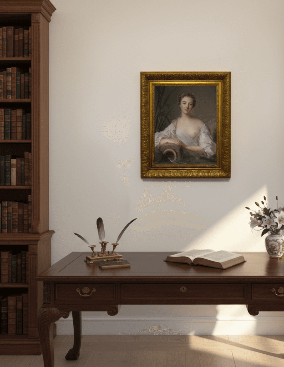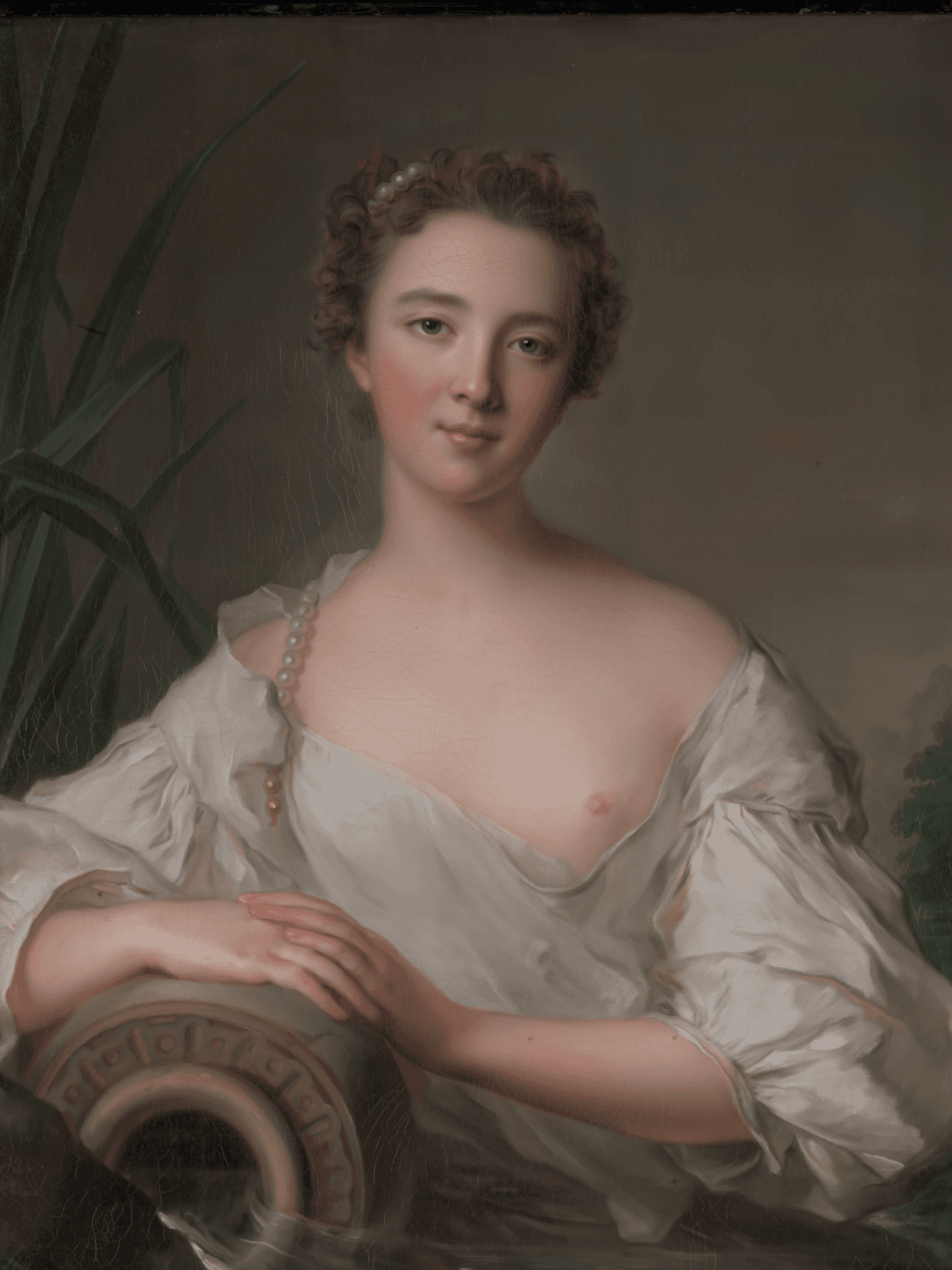 กรอบรูปลายหลุยส์เก่า งานภาพพิมพ์ สไตล์ สีน้ำมันบนผ้าใบ ภาพ The Spring (La Source)Jean-Marc Nattier (1685–1766)