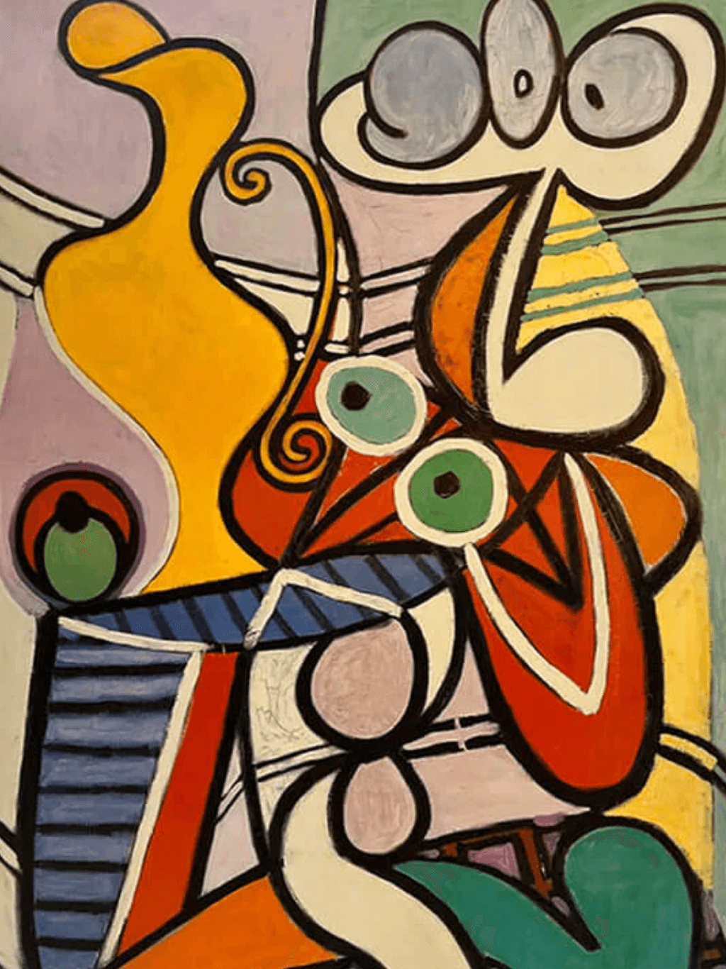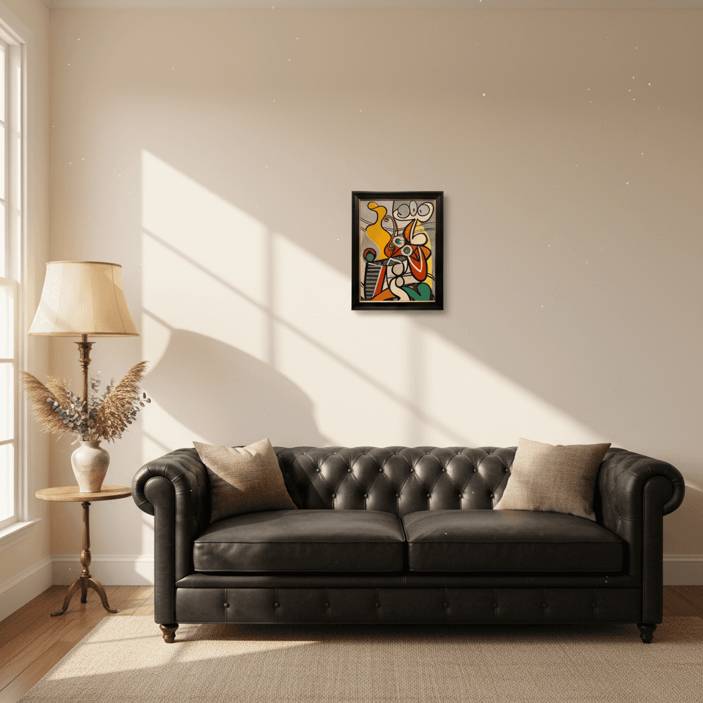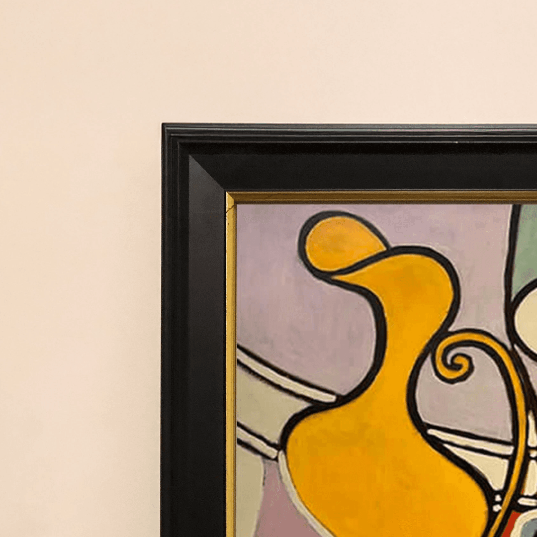 กรอบรูปสีดำด้านขอบทอง ภาพพิมพ์ สไตล์สีน้ำมัน บนผ้าใบ ภาพ Still Life with a Pedestal Wood Mount 1931 ของ pablo picasso