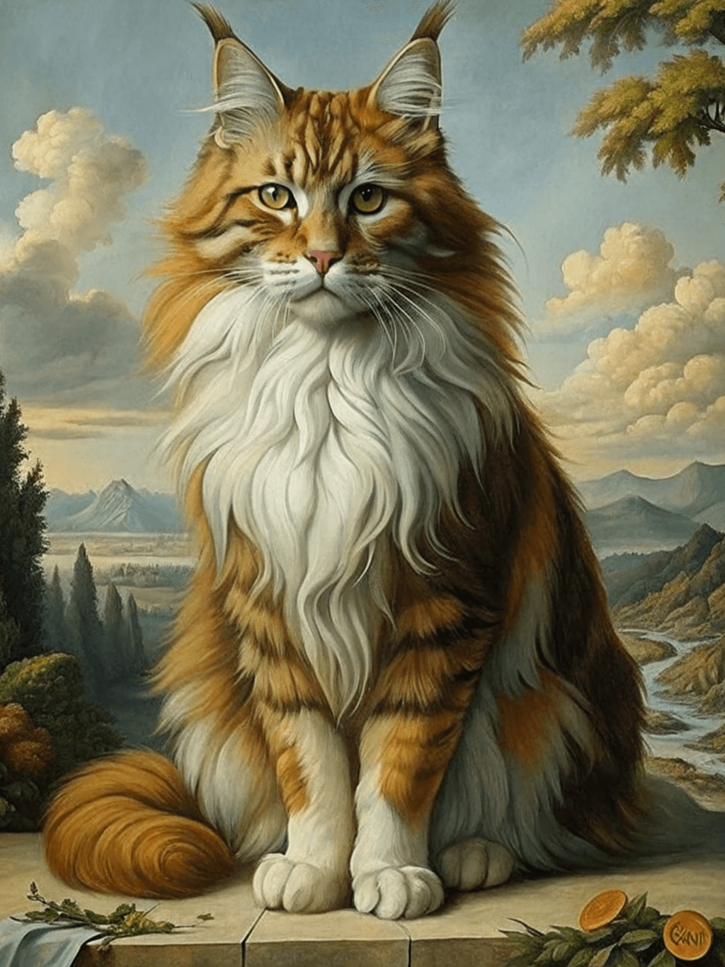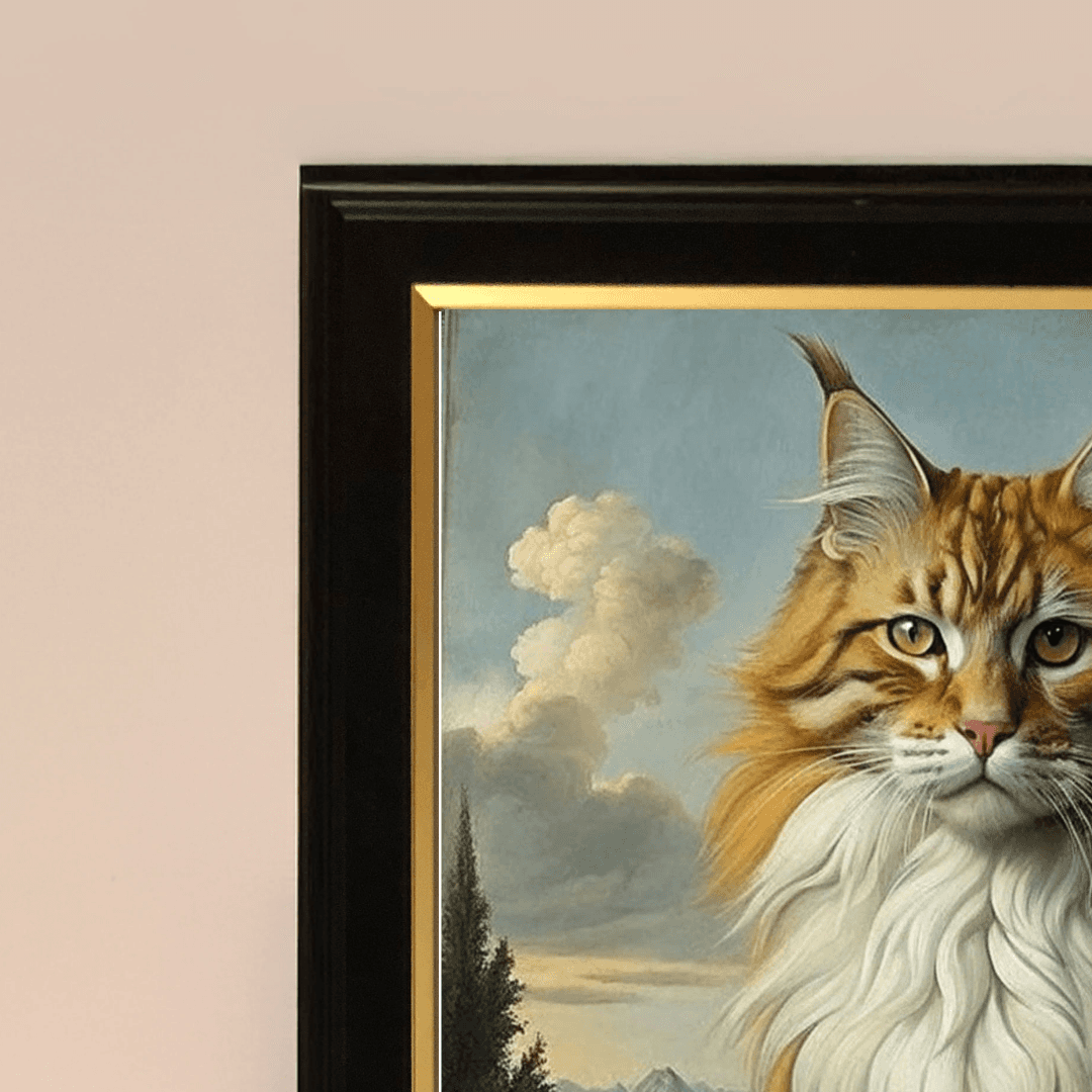 กรอบรูปไม้ สีดำด้านขอบทอง ภาพพิมพ์ Majestic Feline in Renaissance Light ราคารวมค่าส่ง