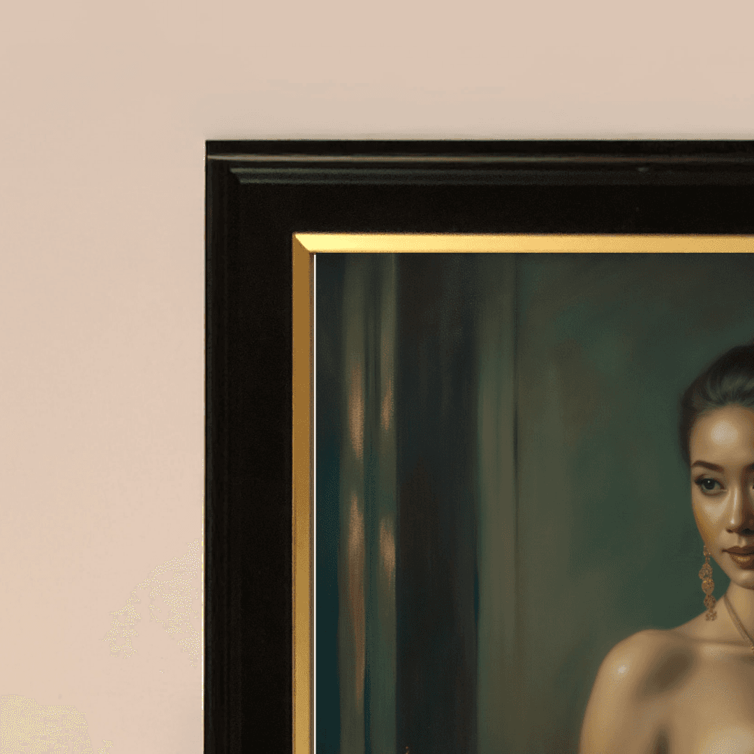 กรอบรูปไม้แท้ สีดำด้าน ภาพพิมพ์ Thai Portrait