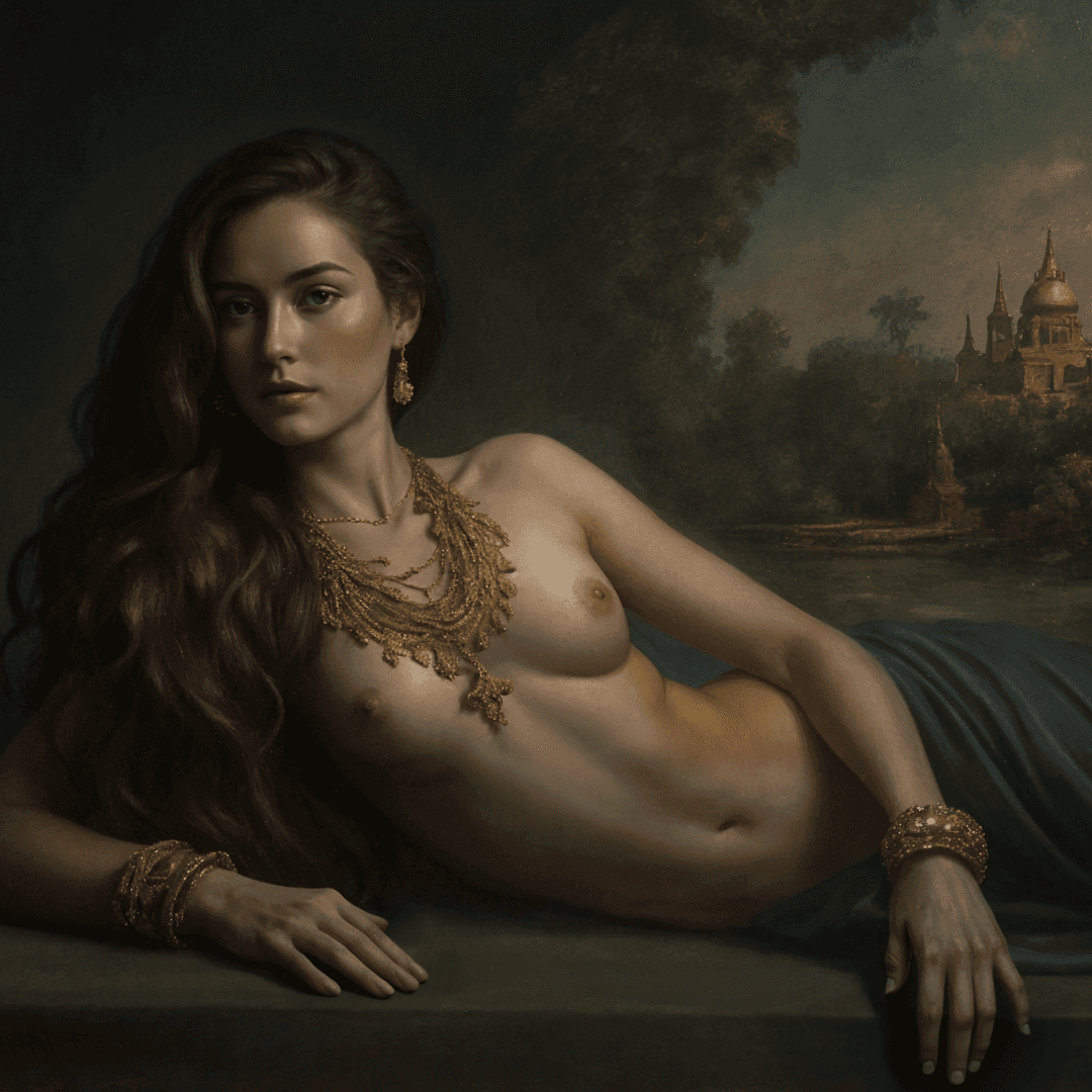 กรอบรูปไม้แท้ สีดำด้าน ภาพพิมพ์ Erotic Portrait Painting