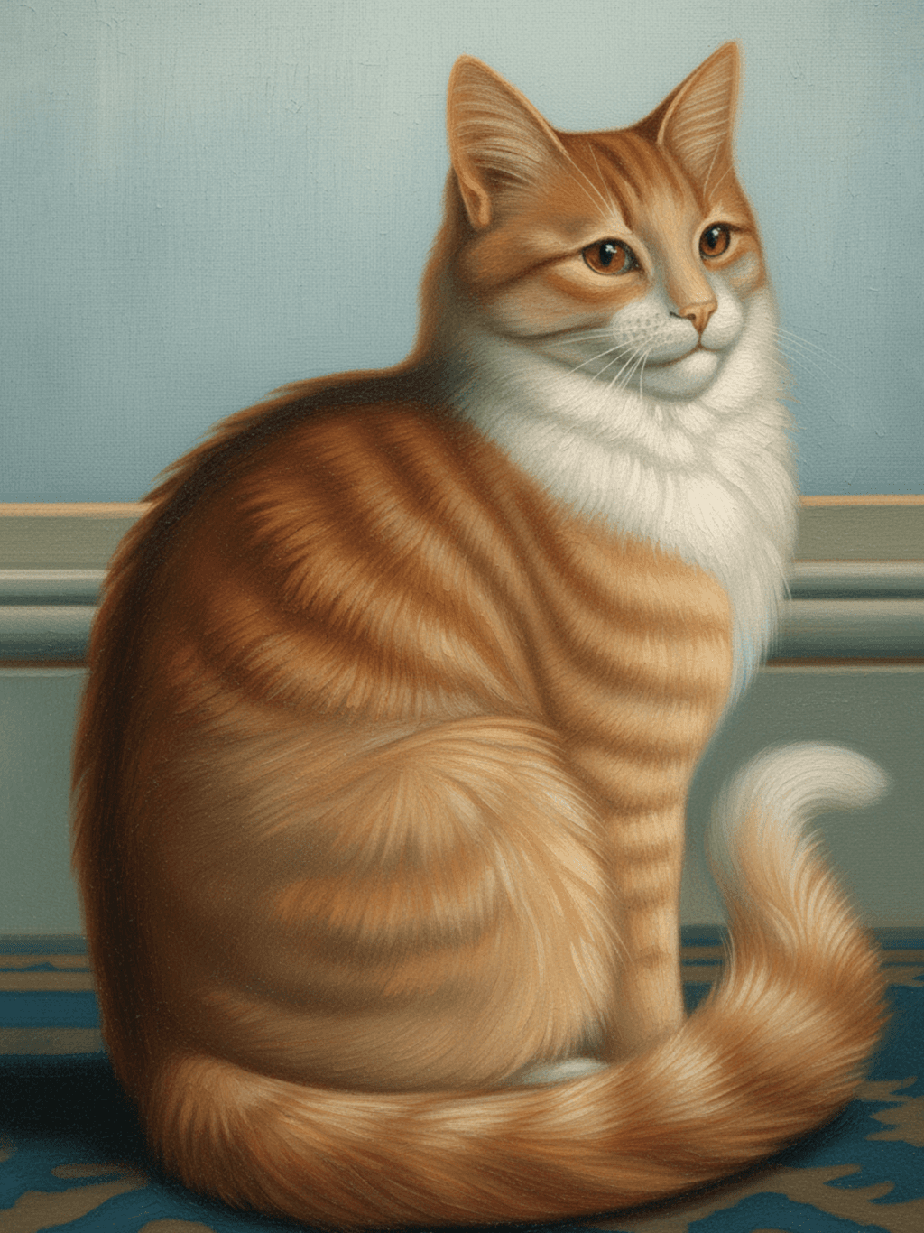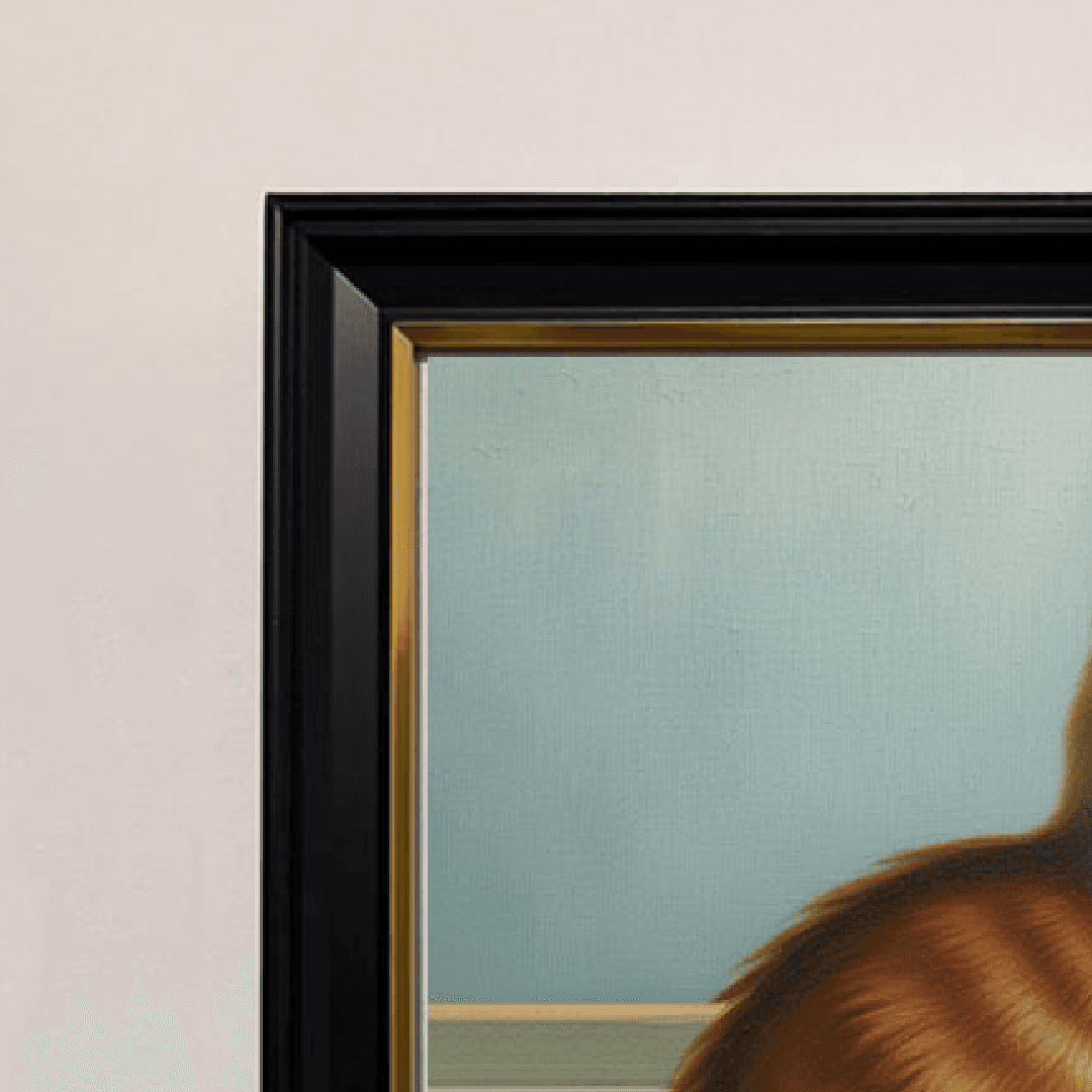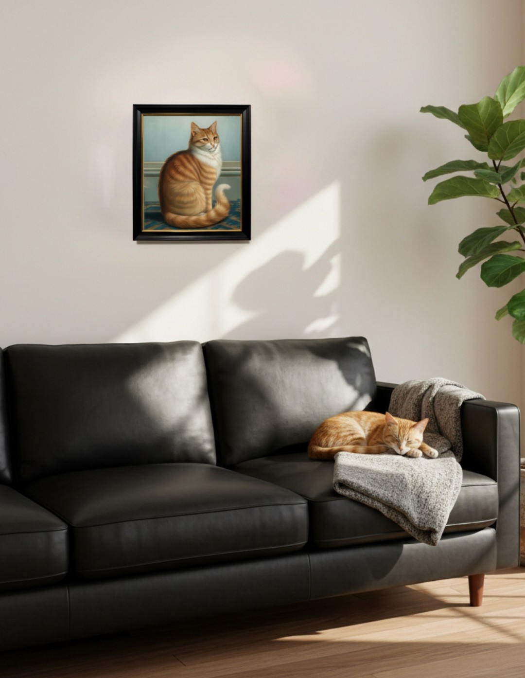 กรอบรูปสีดำด้านขอบทอง ภาพพิมพ์ สไตล์สีน้ำมัน บนผ้าใบ ภาพ The cat