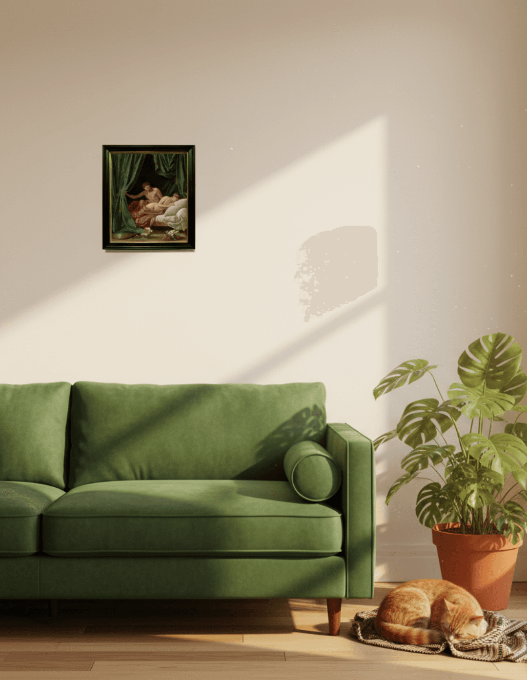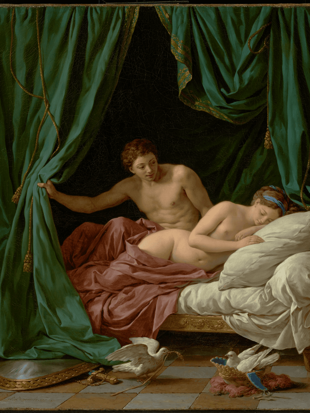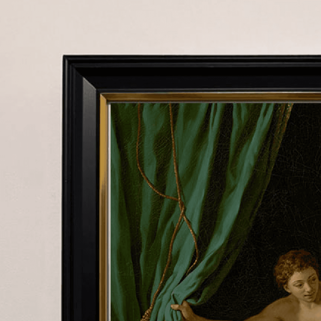 กรอบรูปสีดำด้านขอบทอง ภาพพิมพ์ สไตล์สีน้ำมัน บนผ้าใบ ภาพ Mars & Venus, Allegory of Peace