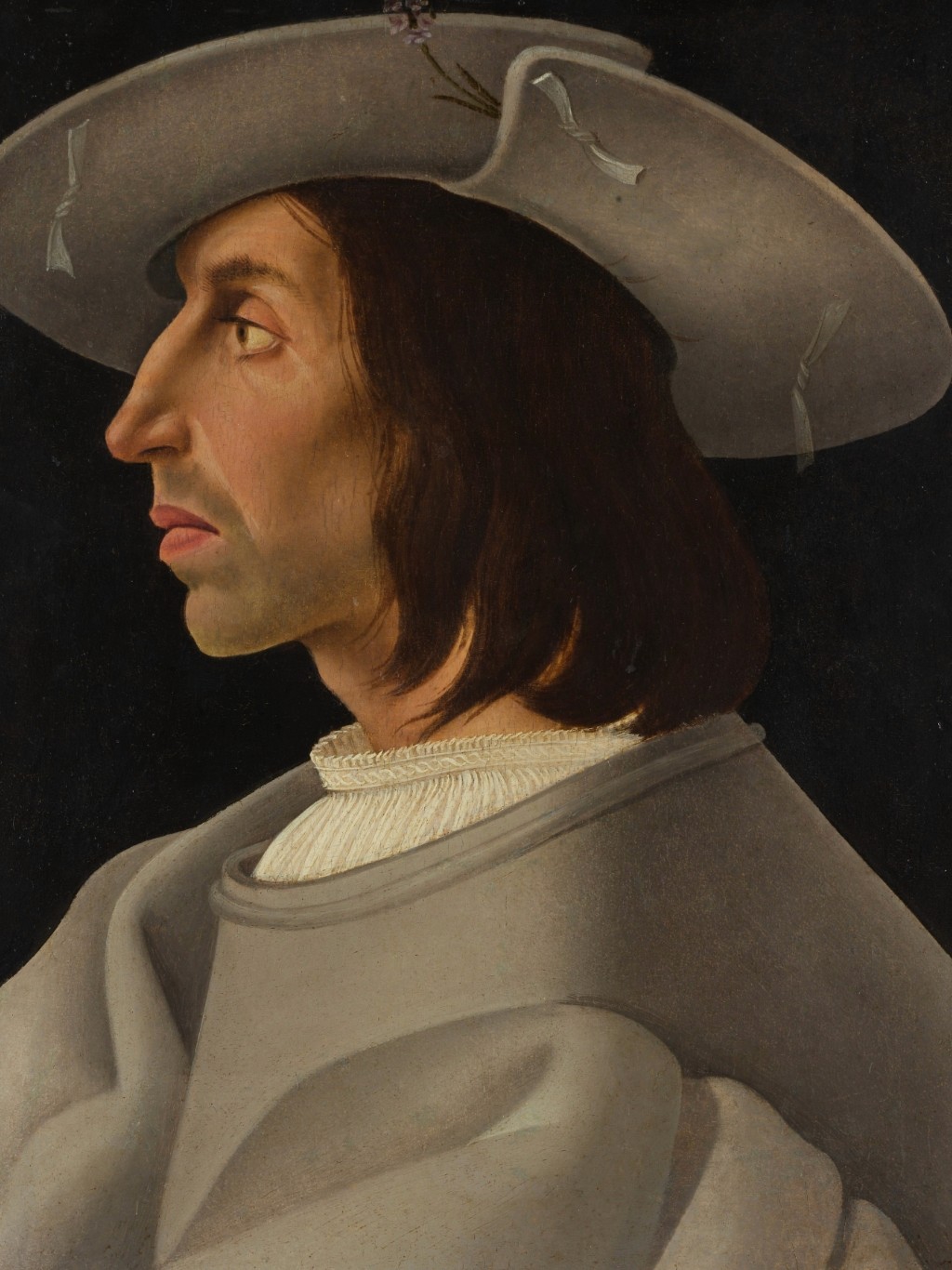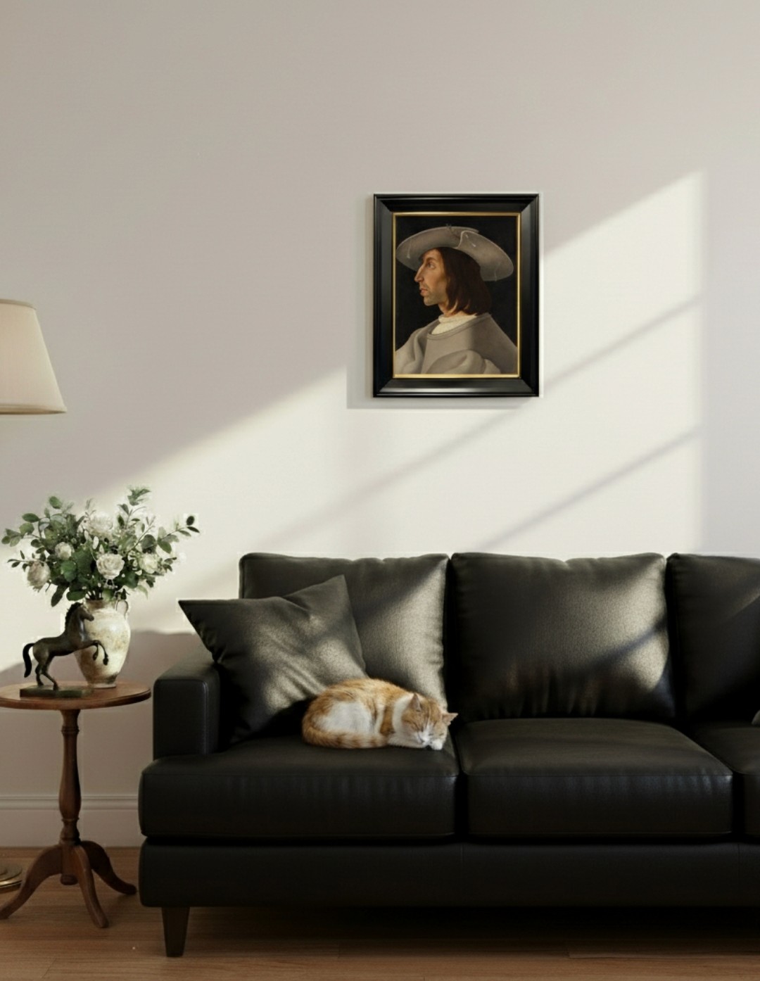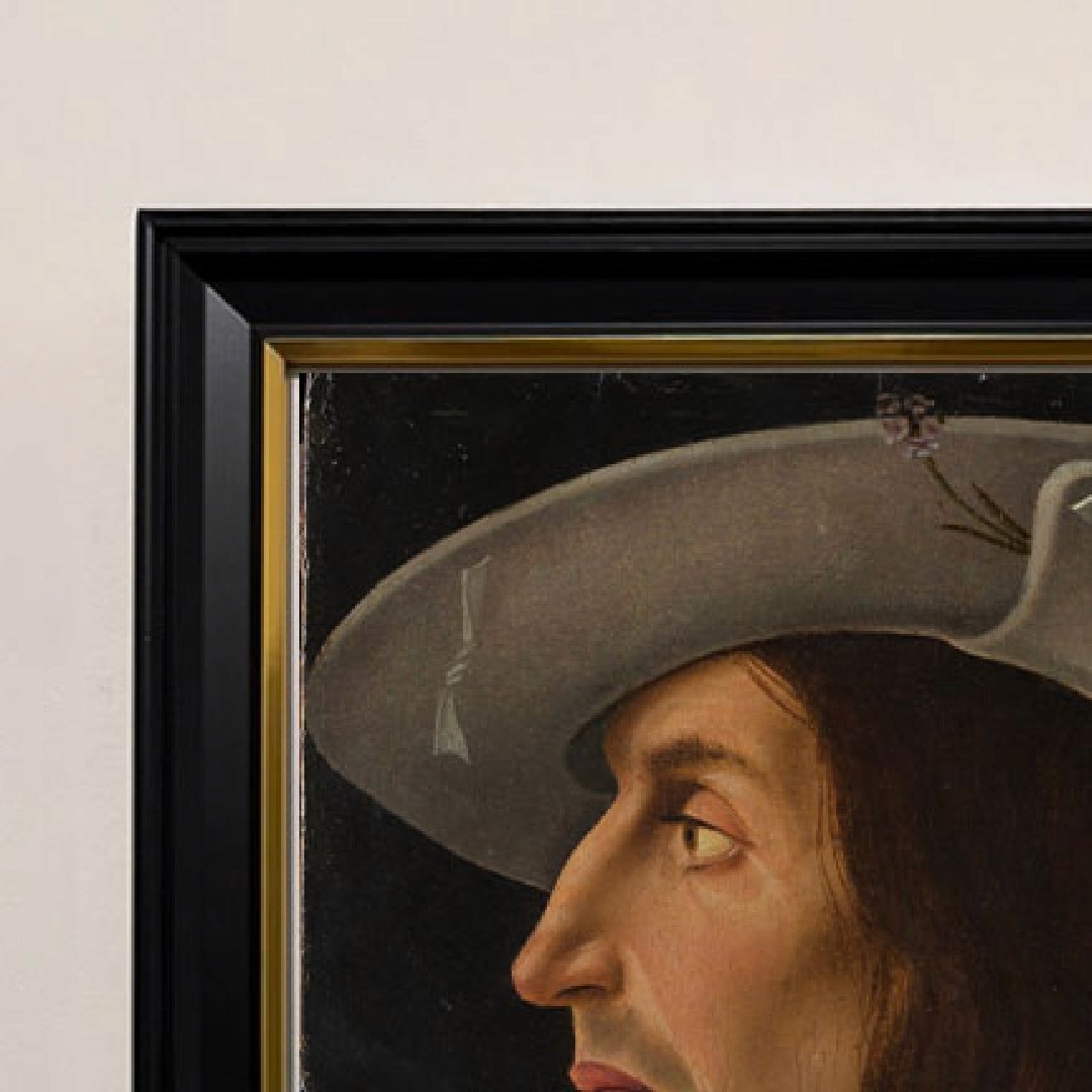 กรอบรูปสีดำด้านขอบทอง ภาพพิมพ์ สไตล์สีน้ำมัน บนผ้าใบ ภาพ Portrait of a Man in Profile by Italian Painter
